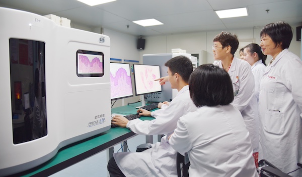 在江夏区委区政府支持下,医院加大投入,引进国内外先进病理设备和系统,同时配备病理诊断图像处理软件、智慧病理管理系统等,实现全流程可回溯信息化管理,建成数字化、智慧化、远程化的数智化病理诊断中心。