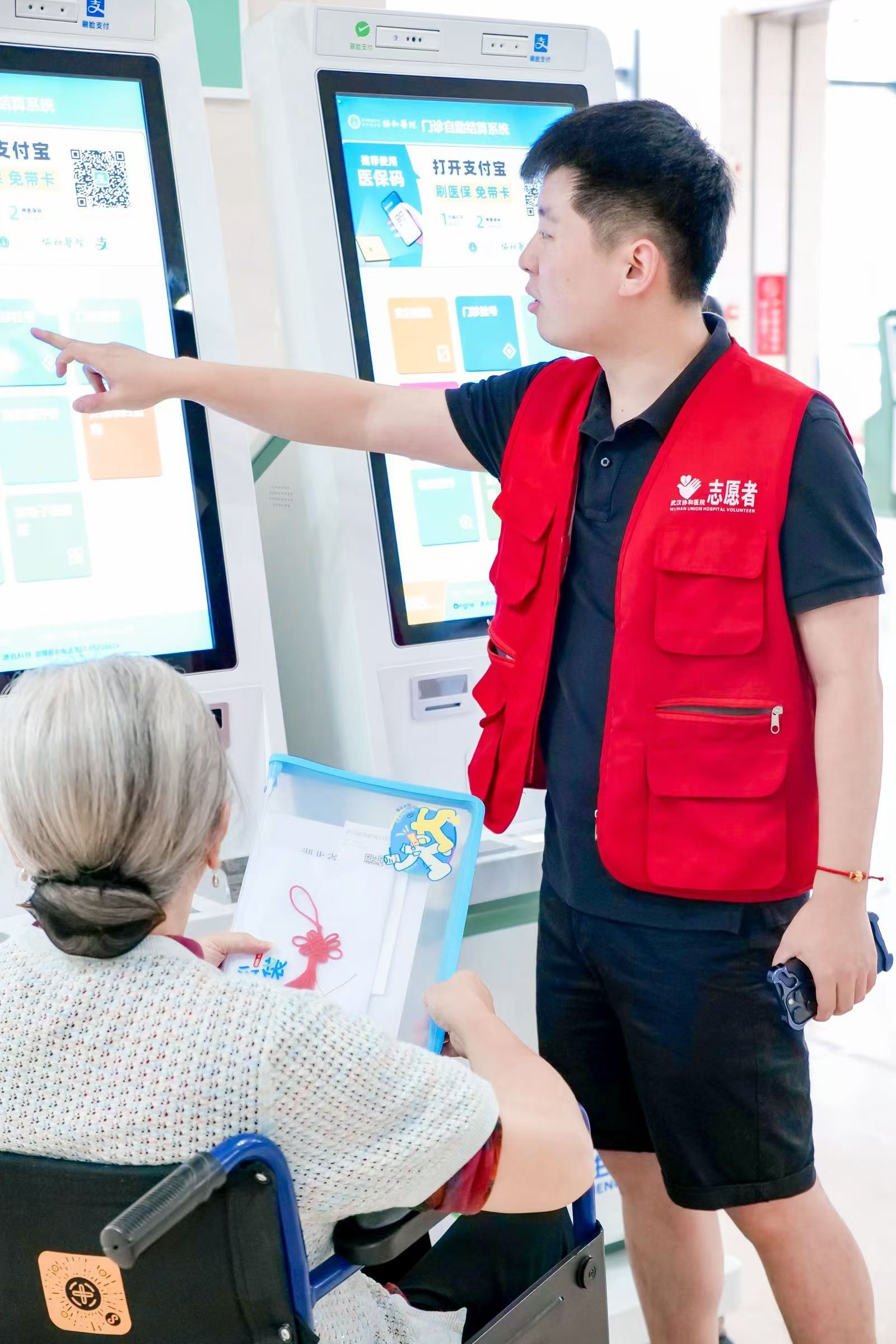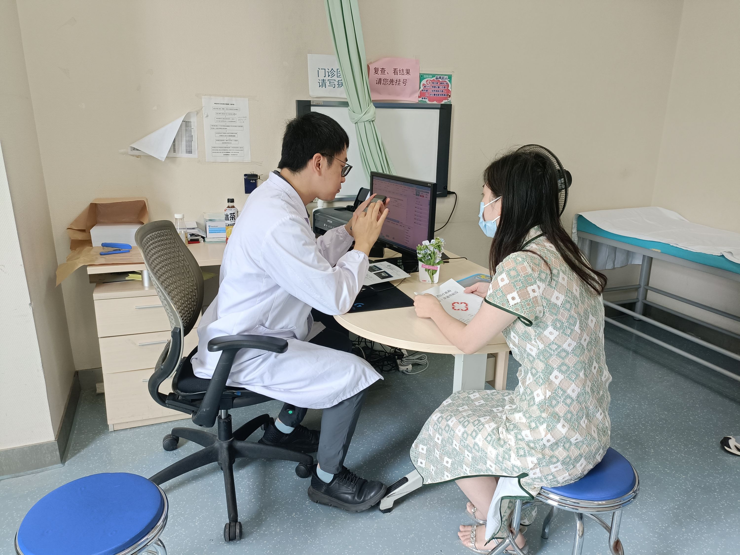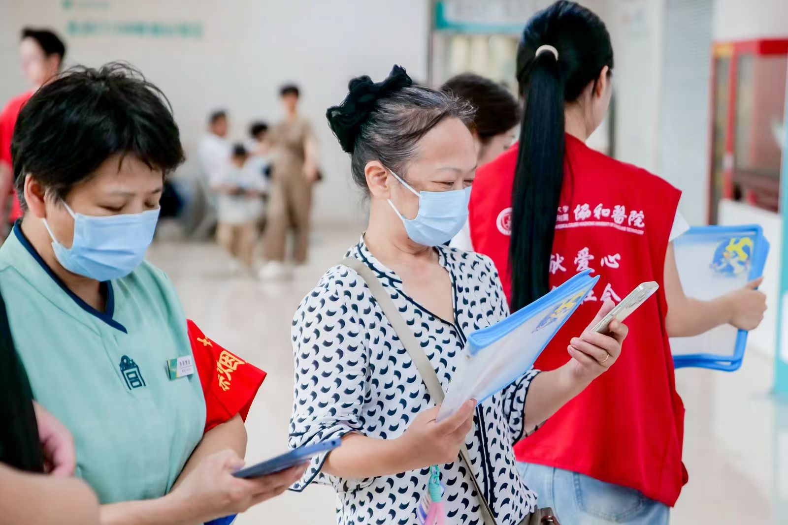 有的患者愁眉苦脸,志愿者为其送上“解忧小花束”——蓝星花;有的患者拿着一堆病历单、化验单无所适从,打卡点精心准备的“放轻松”收纳袋让患者喜上眉梢。