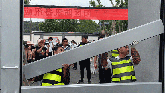 昨日,在汉江江滩国棉一厂闸口进行的拼装实验。记者王怡人 摄