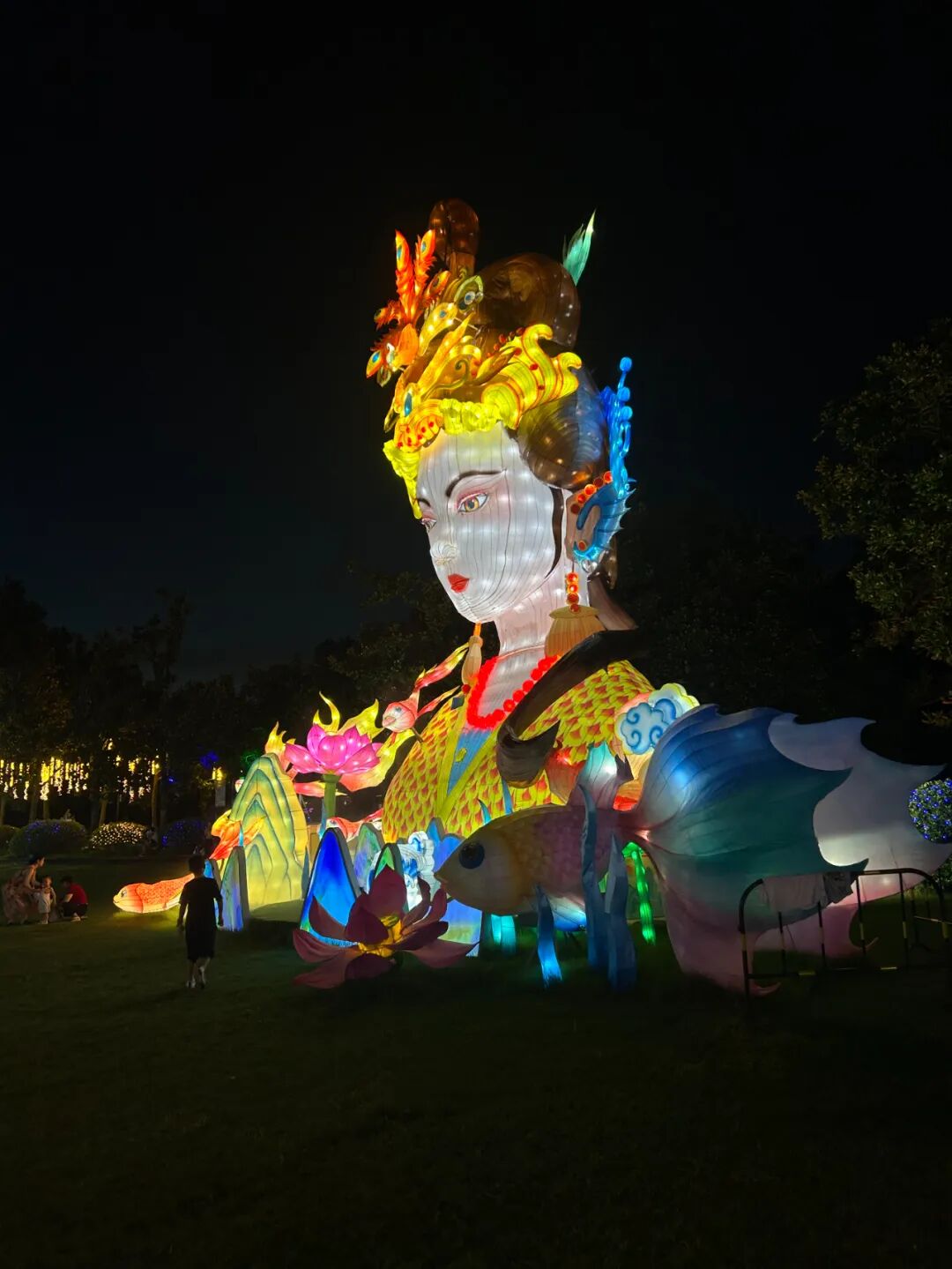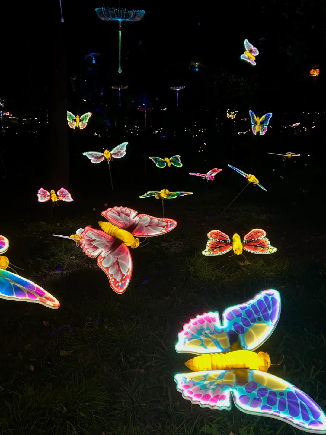 走进植物园,我瞬间被眼前的景象所震撼。不同于白日的静谧,夜晚的植物园被灯光点亮,摇身一变,成了另一个世界。“洛神繁花夜”东湖光影潮玩节正在上演,五彩斑斓的花灯长廊,仿佛一条时空隧道;巨型的洛神花灯,散发着迷人的光芒;四周的萤火虫灯、蝴蝶光纤灯交织在一起,犹如繁星点点,为夜晚增添了一抹神秘与浪漫。