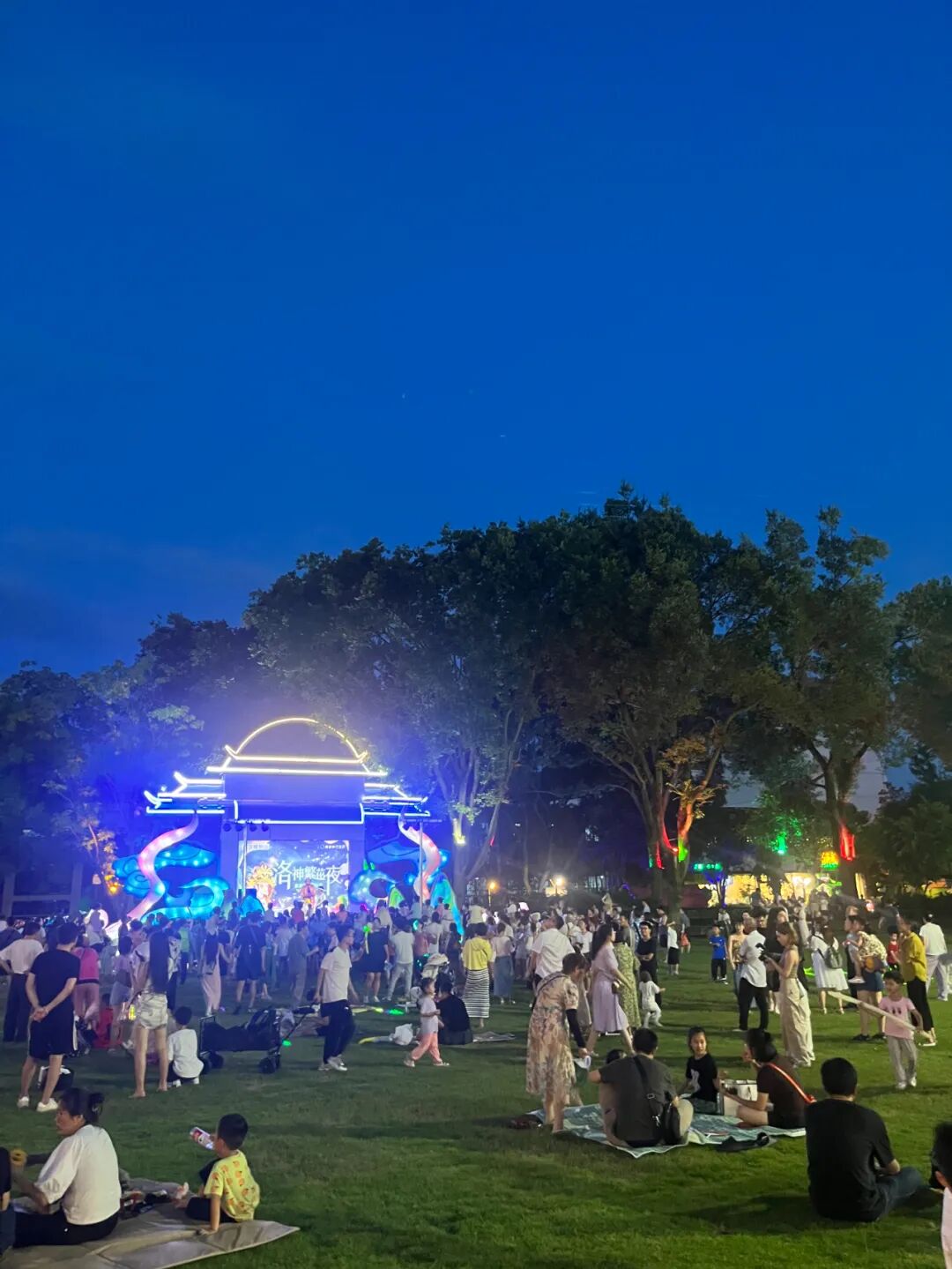 儿子兴奋地拉着我到处跑,对每一个场景都充满了好奇。逛完了国风荷花市集,我们又碰上魔术小丑互动,这是小家伙最喜欢的项目,全程笑得都合不拢嘴。最后玩累了,在那片睡莲盛开的池塘边,我们坐了下来,慢慢地回味这奇妙的夜,享受着难得的宁静与惬意。