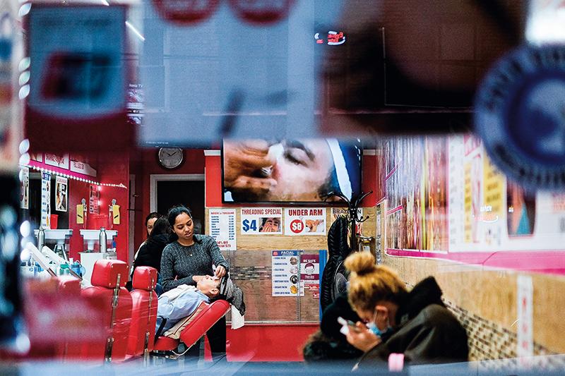 美国纽约一家美发沙龙的工作人员为顾客服务(2023年1月6日摄) 朱子于摄/本刊