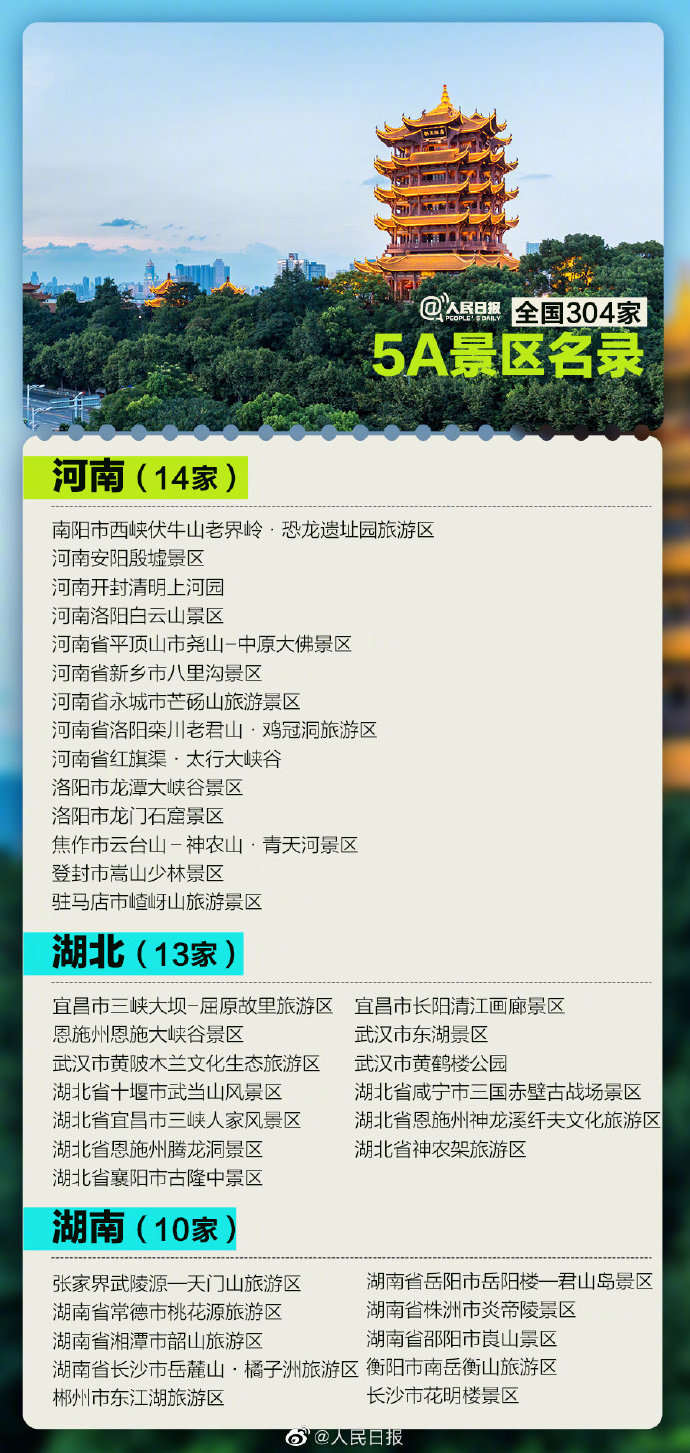截至目前,全国共有304家5A景区。数数看,你去过多少个了?今天,中国旅游日。收好这份5A景区全名单,和小伙伴一起去打卡吧!详见>>