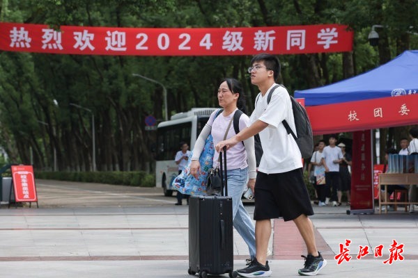 2024年8月30日,华中科技大学迎来一张张朝气蓬勃的新面孔——2024级新生。数千新生在家属的陪同下,带着大包小包行李来到喻家山。校园里热闹非凡,学长学姐们充当志愿者,热情地引导新生和家长,完成所有的报到程序。今年,华科吸引来7000余名优秀本科新生。