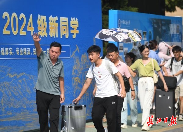 9月2日,中国地质大学(武汉)2024级新生入学报到,迎新现场热情洋溢。“同学,我来帮你提行李!”“同学,我带你去学院迎新点!”大学志愿者们手举引导牌穿梭不停,面带微笑,悉心帮助每一位来到地大的新同学,搬运行李、报到注册、路线引导等,向新生传递着“家”的温暖。