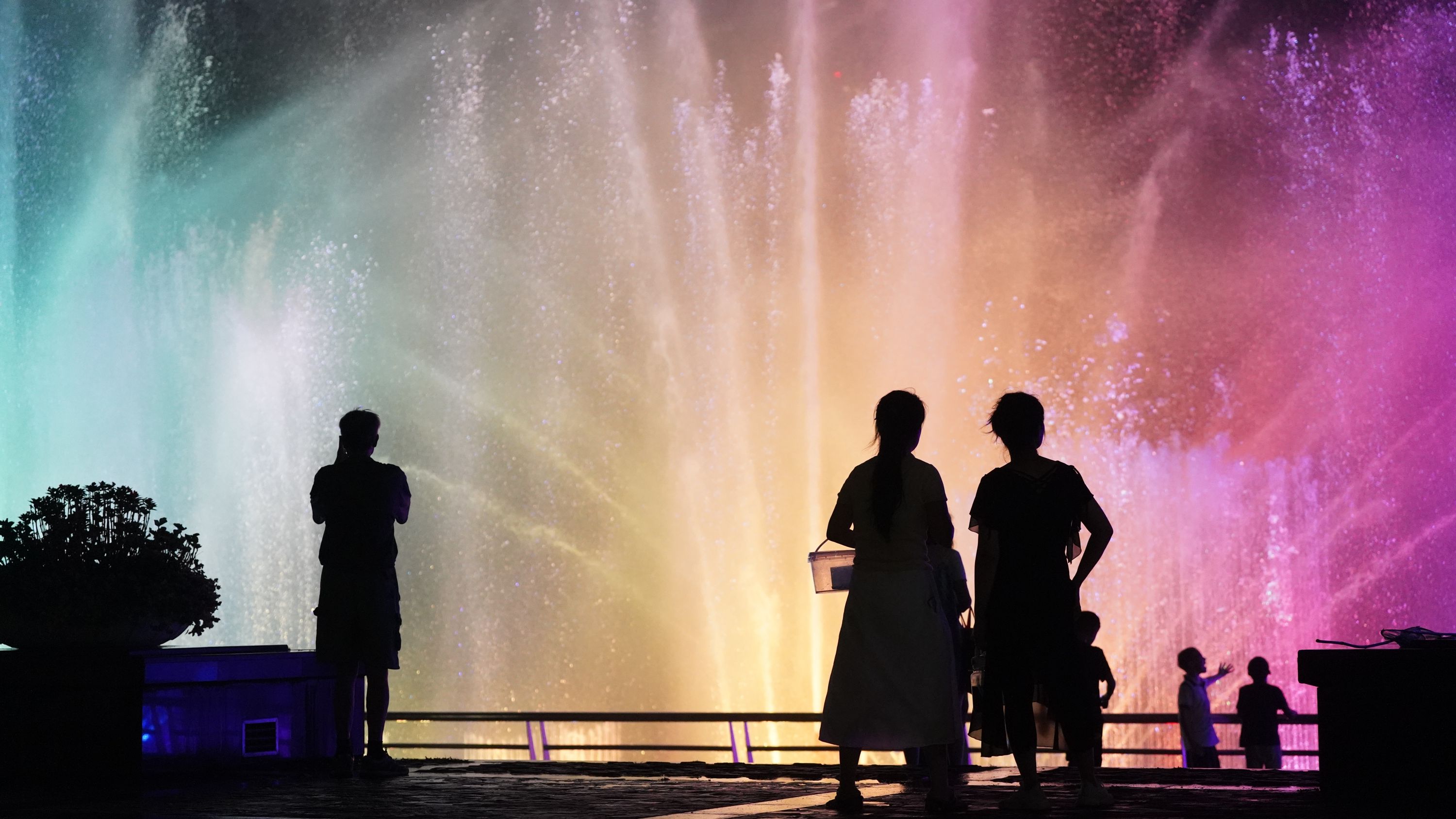 家住万松园路的市民王女士与丈夫看到音乐喷泉变成了彩色的,十分惊喜。她说:“太意外了,很美,市民又多了一个好玩的地方。”