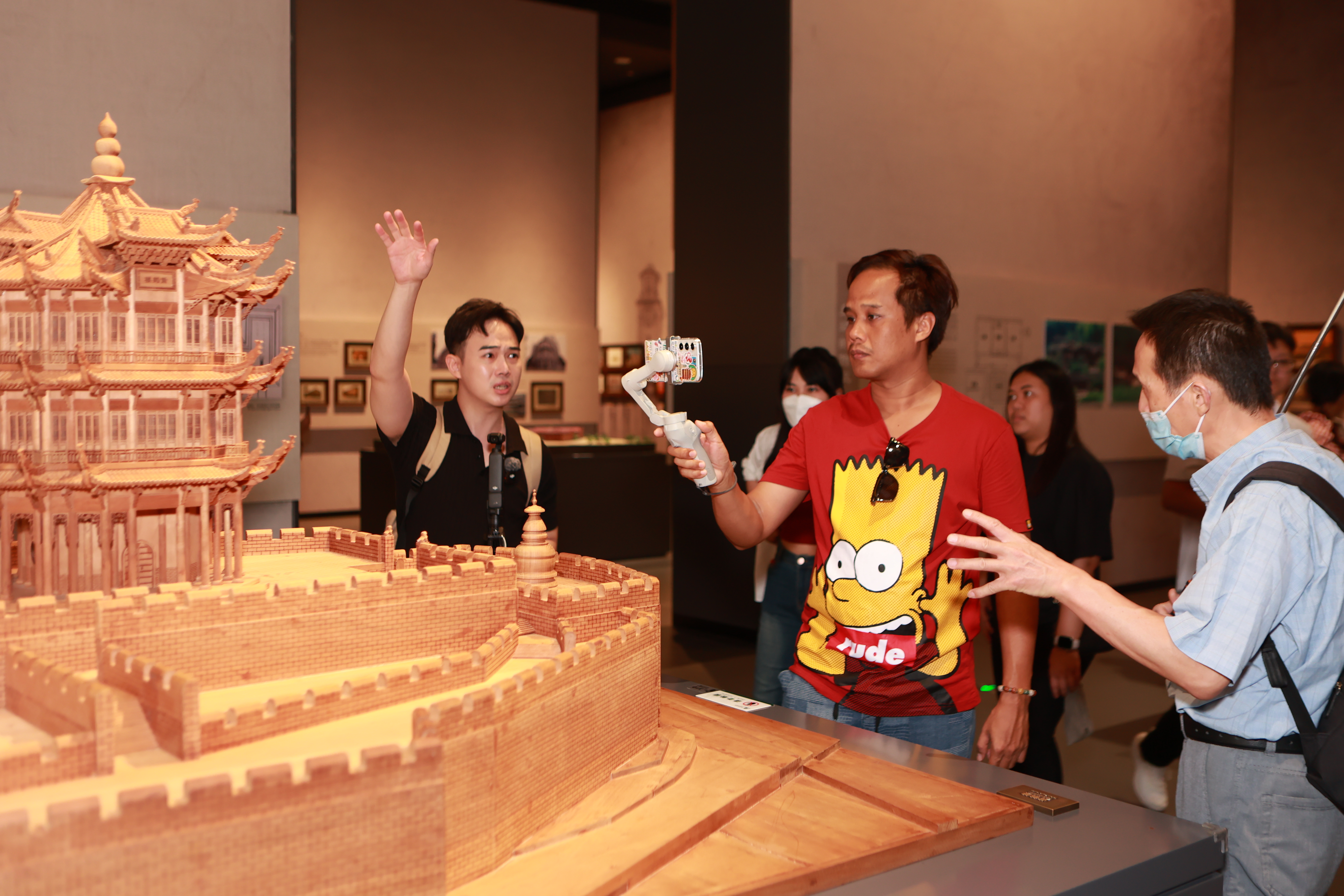 泰国自媒体赴湖北采风团游览中国建筑科技馆。