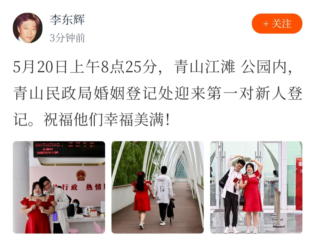 发布了一组新人登记结婚的照片