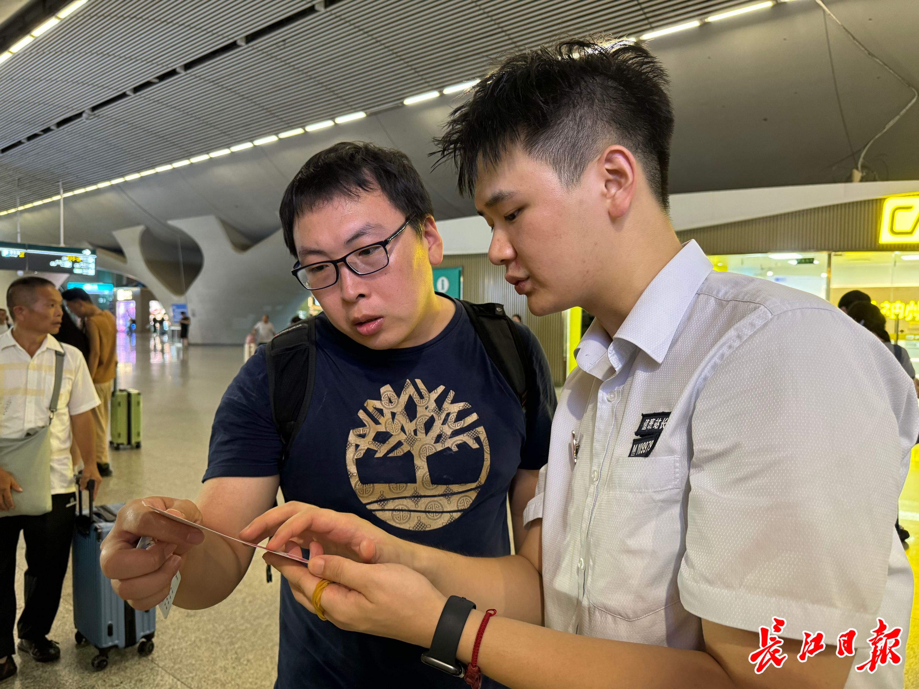 “刚才问客服工作人员,他们也告诉我了,但一下子记不住。有这张小纸条,更方便。”朱先生拿着小纸条满意进站乘车。
