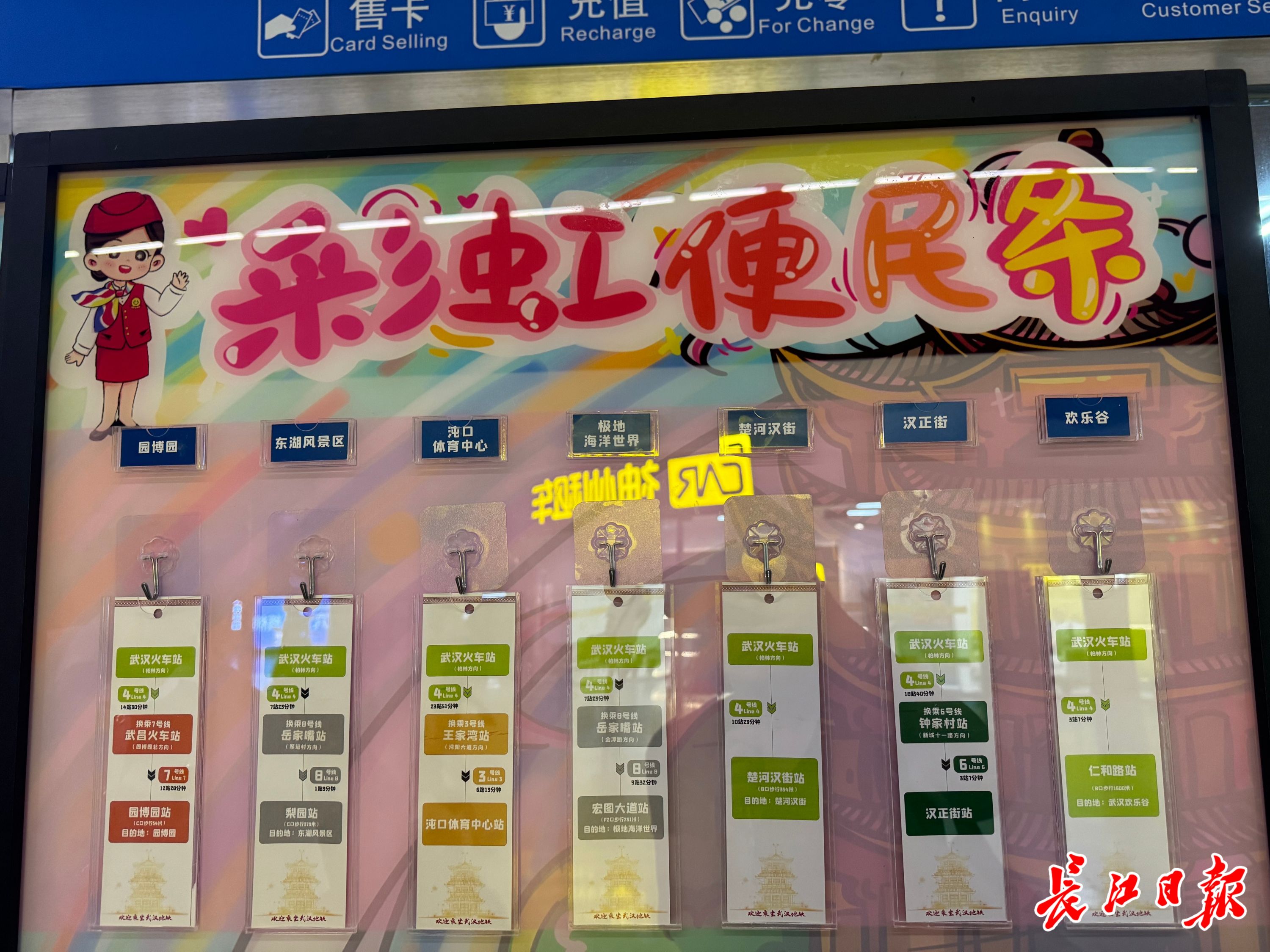 李毅介绍,4号线武汉火车站从2021年开始打造“彩虹便民条”,随着新线不断增加,他们结合近几年乘客询问度最高的目的地,今年推出了第三次全新升级版。
