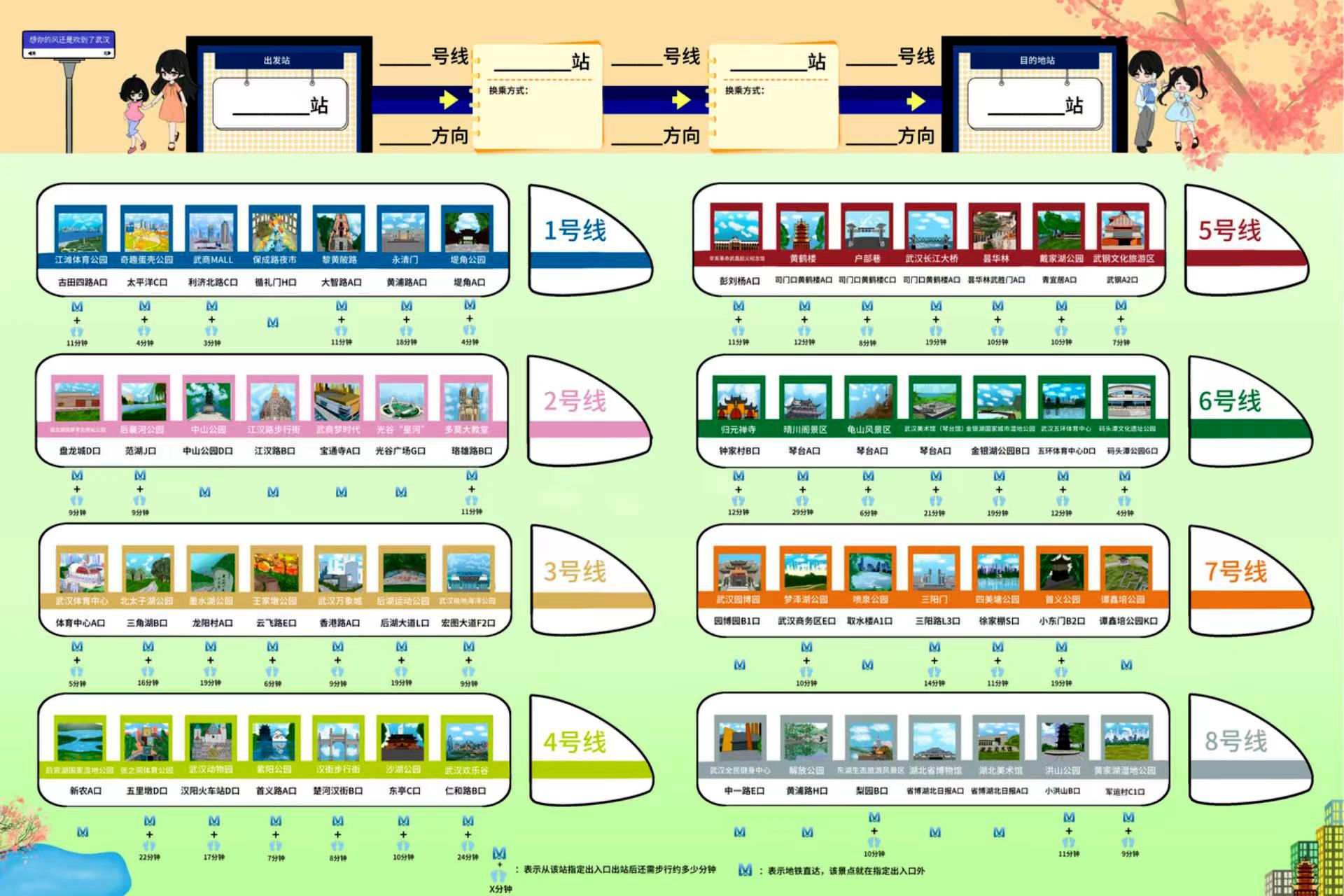 5号线司门口黄鹤楼站推出“指路小纸条”,分热门景点、文化场馆、美食街区、交通枢纽以及“5号线地铁游”5个主题,贴心指引拓展“红墙+”的延伸服务。