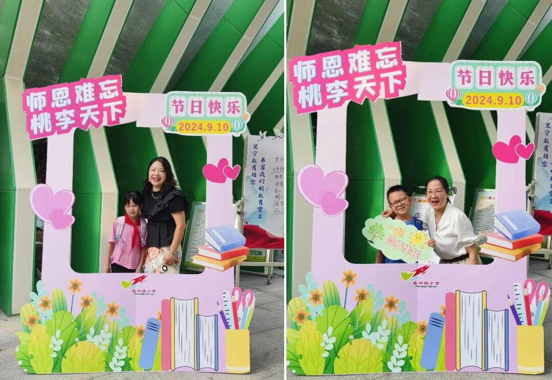 2024年9月10日,在振兴路小学大门前,师生们欢度教师节。