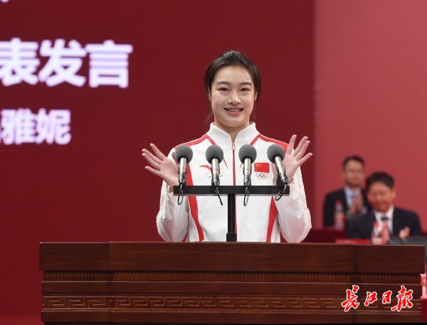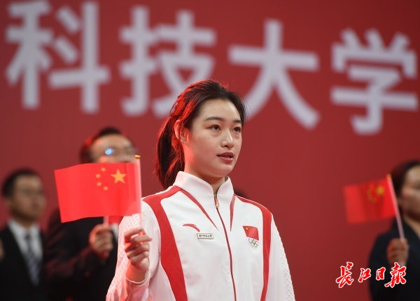 9月11日,华中科技大学光谷体育馆,奥运冠军昌雅妮回校参加华科大2024年开学典礼,昌雅妮挥舞国旗与全体师生合唱《歌唱祖国》,并做热情洋溢的发言。