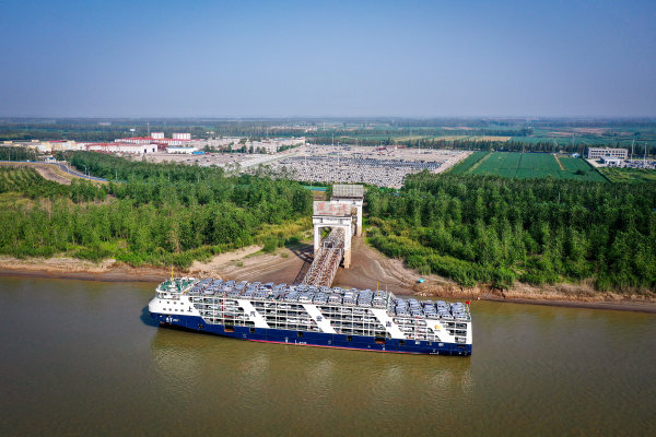 9月10日上午,一辆辆新汽车从汉南港离船上岸。