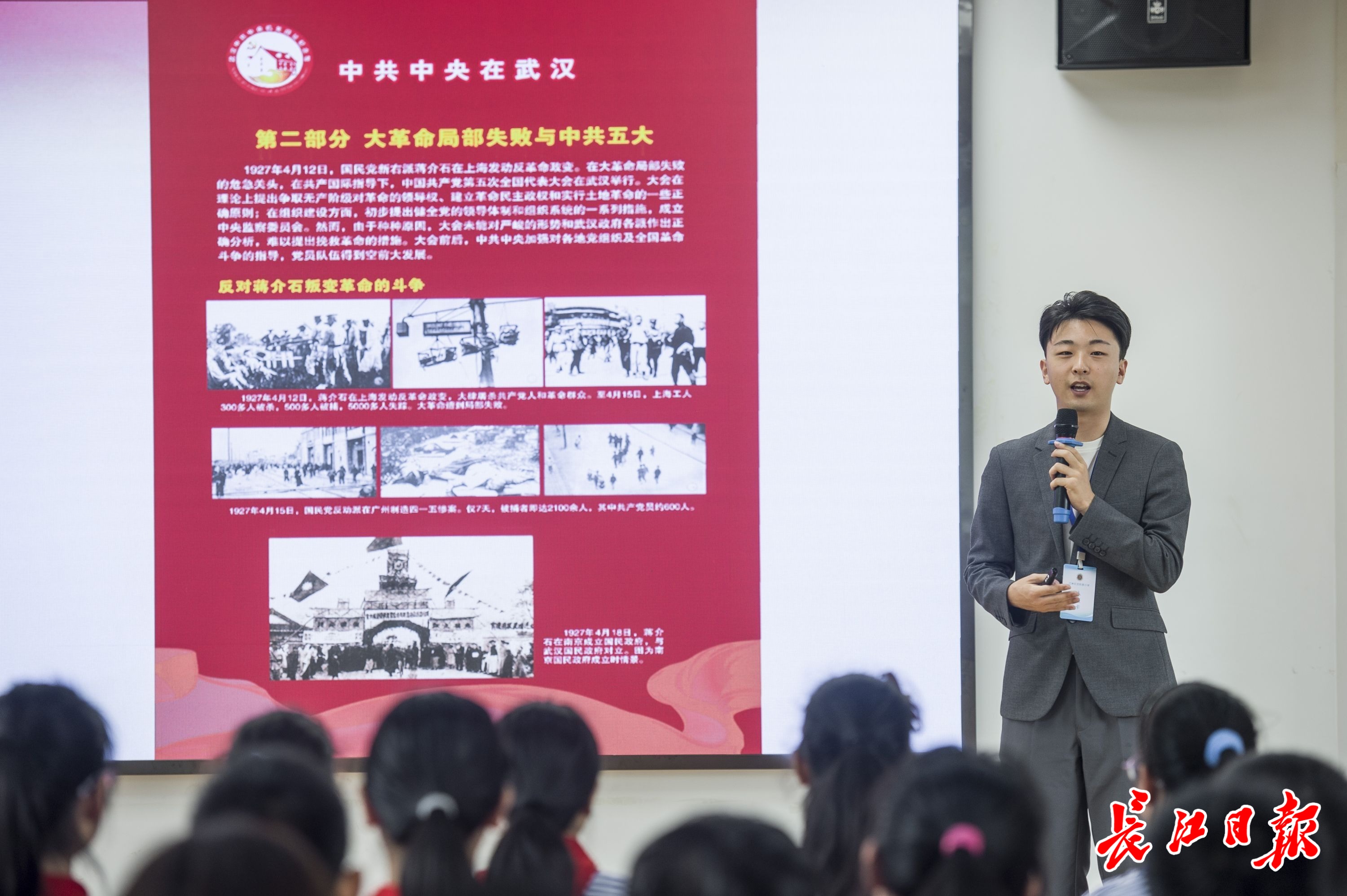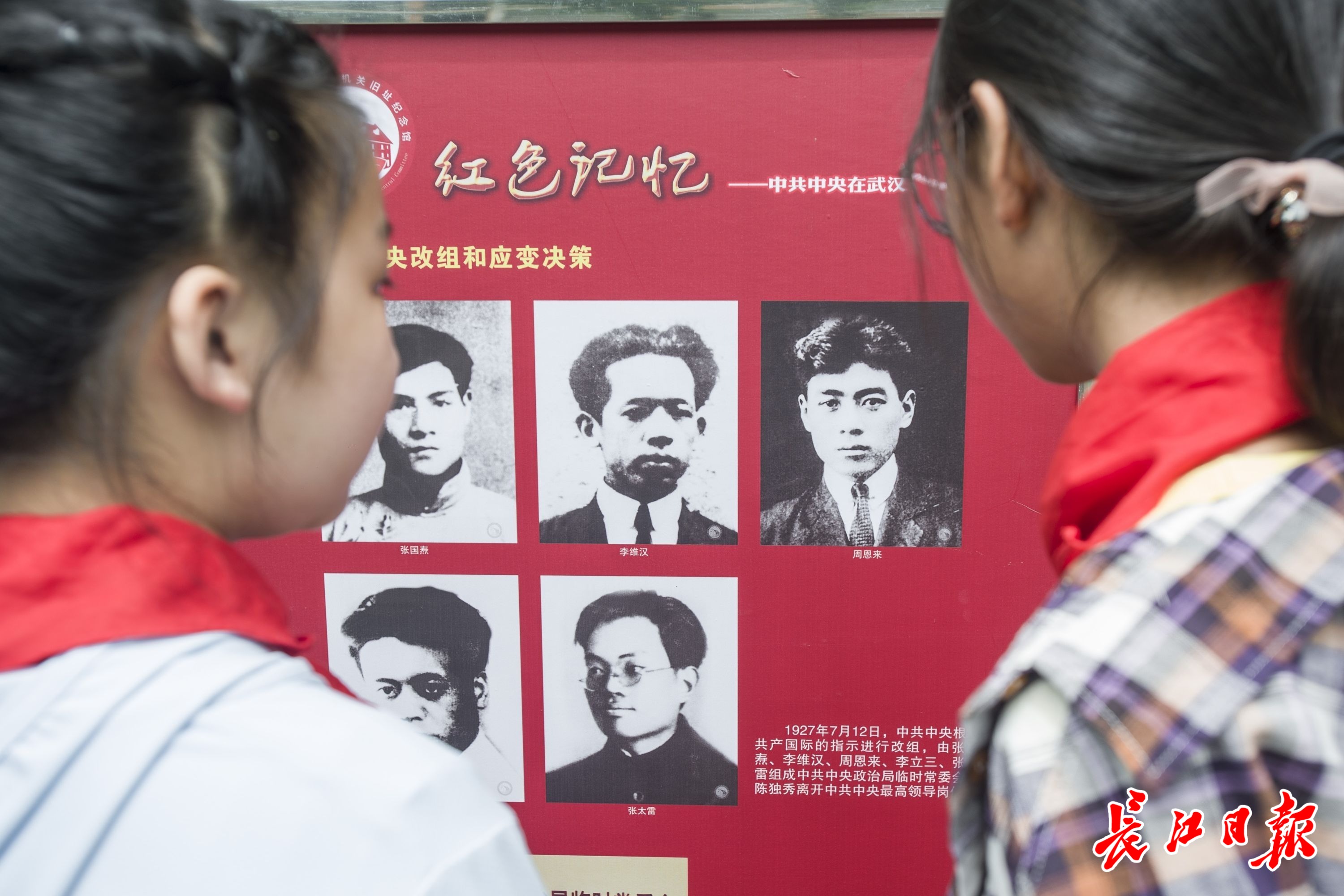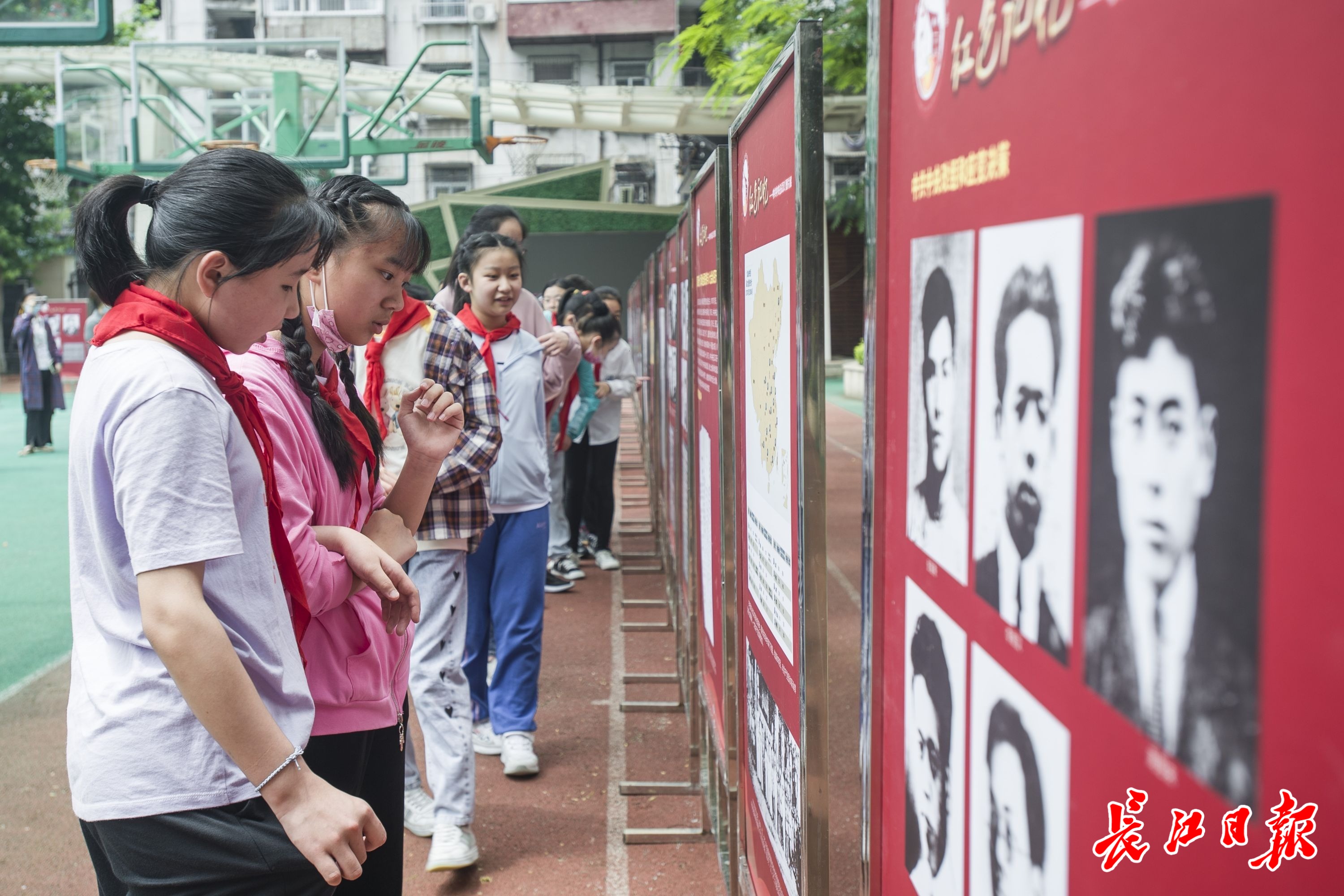 长江日报5月21日讯 为了深入开展党史学习教育“我为群众办实事”主题实践,进一步践行为民服务的初心使命,5月21日,武汉市市委国安办、塘新社区、沈阳路小学三方合作共建,共同开展送党史专题展进社区暨国家安全教育进校园活动。讲解员带着学生们走进武汉中共中央机关旧址纪念馆,一起回顾那段惊心动魄的历史,重温激情燃烧的岁月。学校操场上,《红色记忆——中共中央在武汉》专题展览可供学生们课外时间参观学习。(长江日报记者胡冬冬 摄影报道)