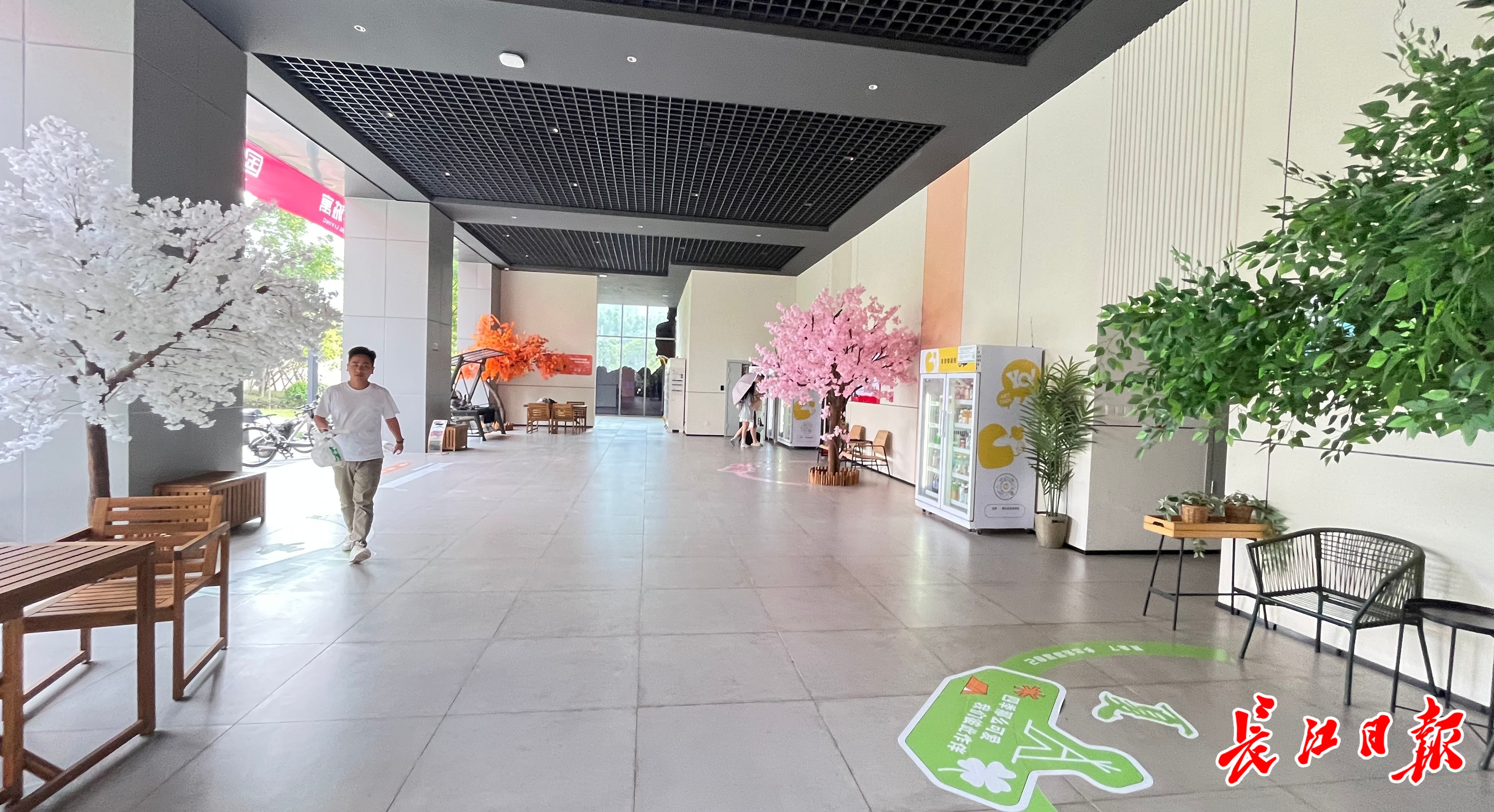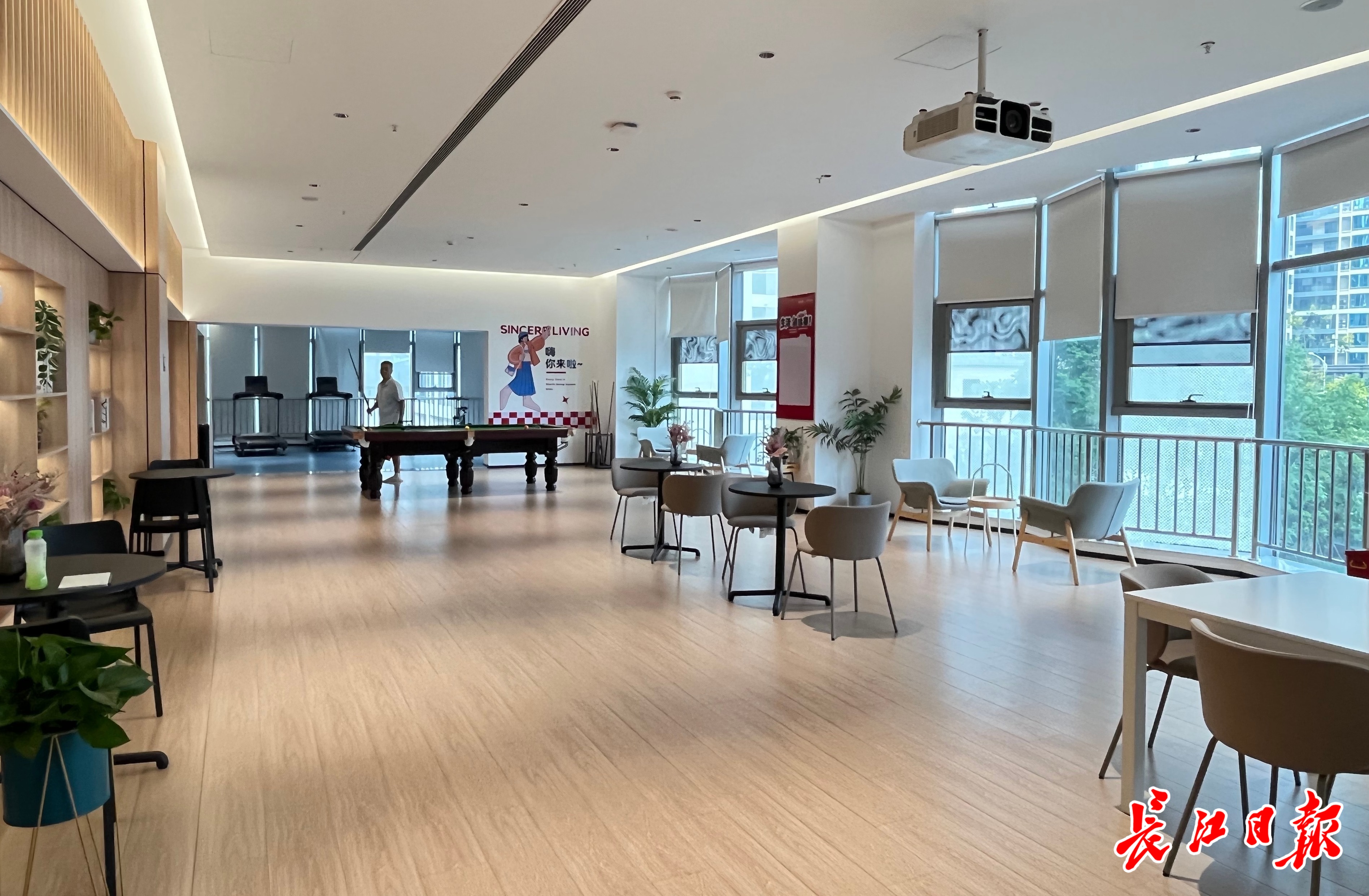 上午8点,长江日报记者在汉阳国博新城附近的国博诚寓东门看到,这里的大门处设有保卫,园区林木茂密、绿树成荫,19层高的三栋高楼屹然挺立,每栋楼下的架空层被建设成兼具不同功能的休闲区,集合了阅读、待客、休闲、健身、餐饮等,可以看到不时有年轻人在这里看书或聊天。而在每栋楼的一、二层,还有专为这里的年轻租客们打造的共享空间,划分为健身房、台球室、会客厅、洽谈区、休闲区、影音室、自习室、阅览室等多个区域。
