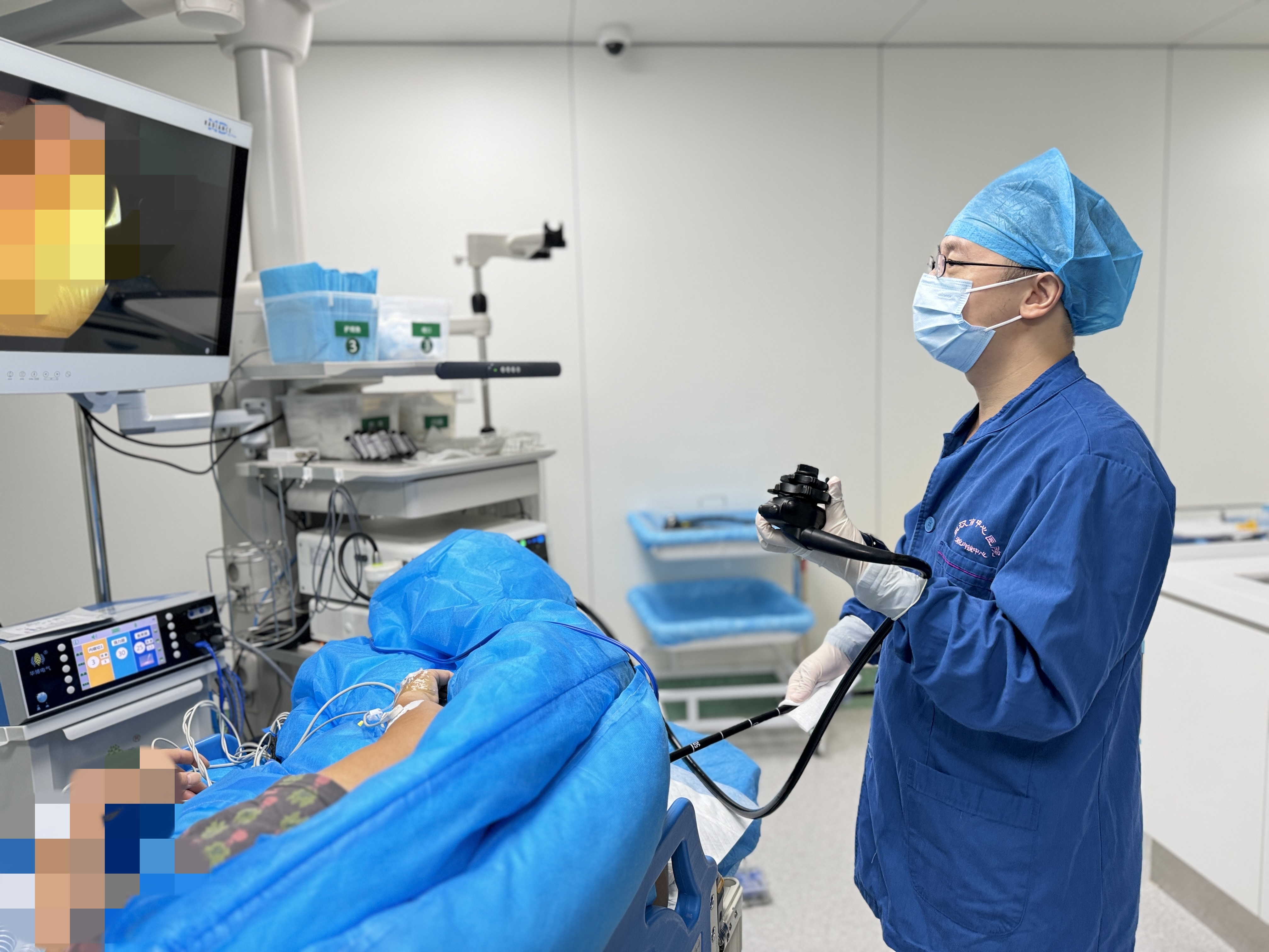 消化内科内镜室孙圣斌主任为患者实施内镜手术治疗。