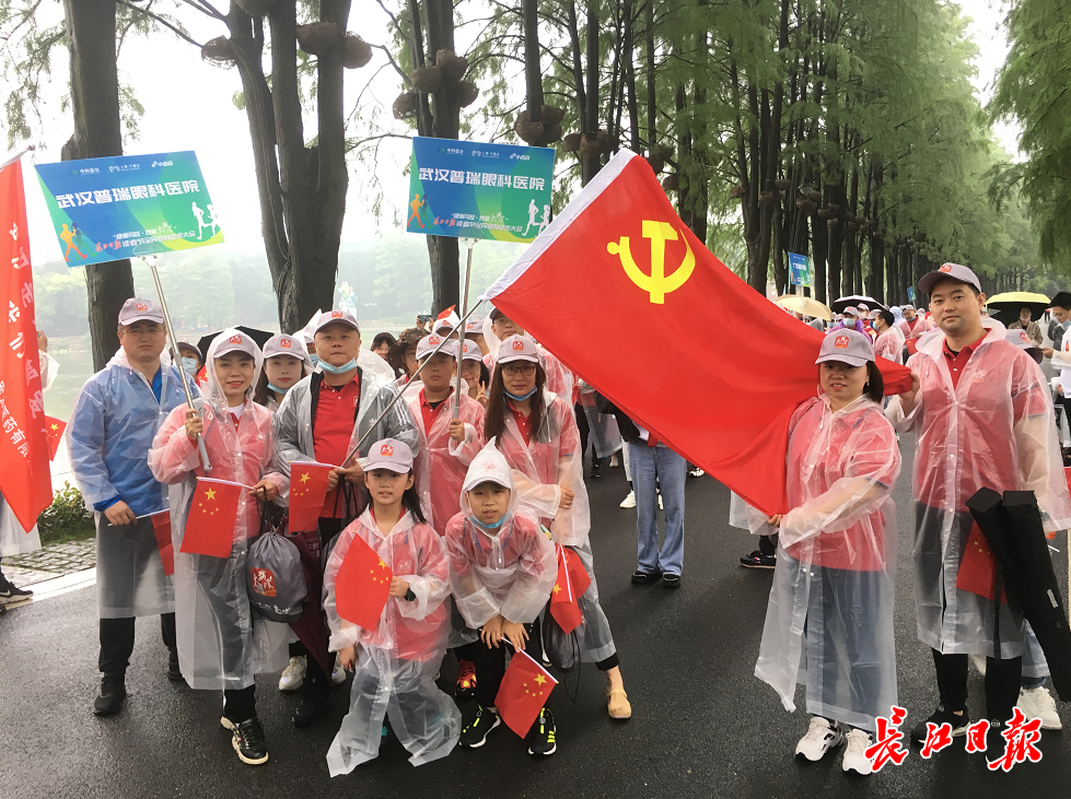 武汉普瑞眼科方阵出发前合影。长江日报记者柯志刚 摄
