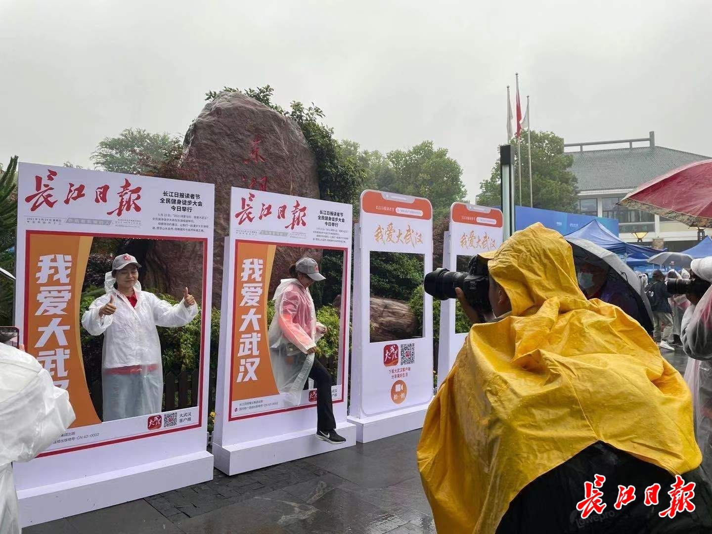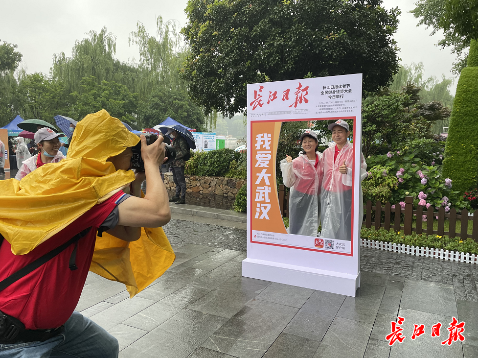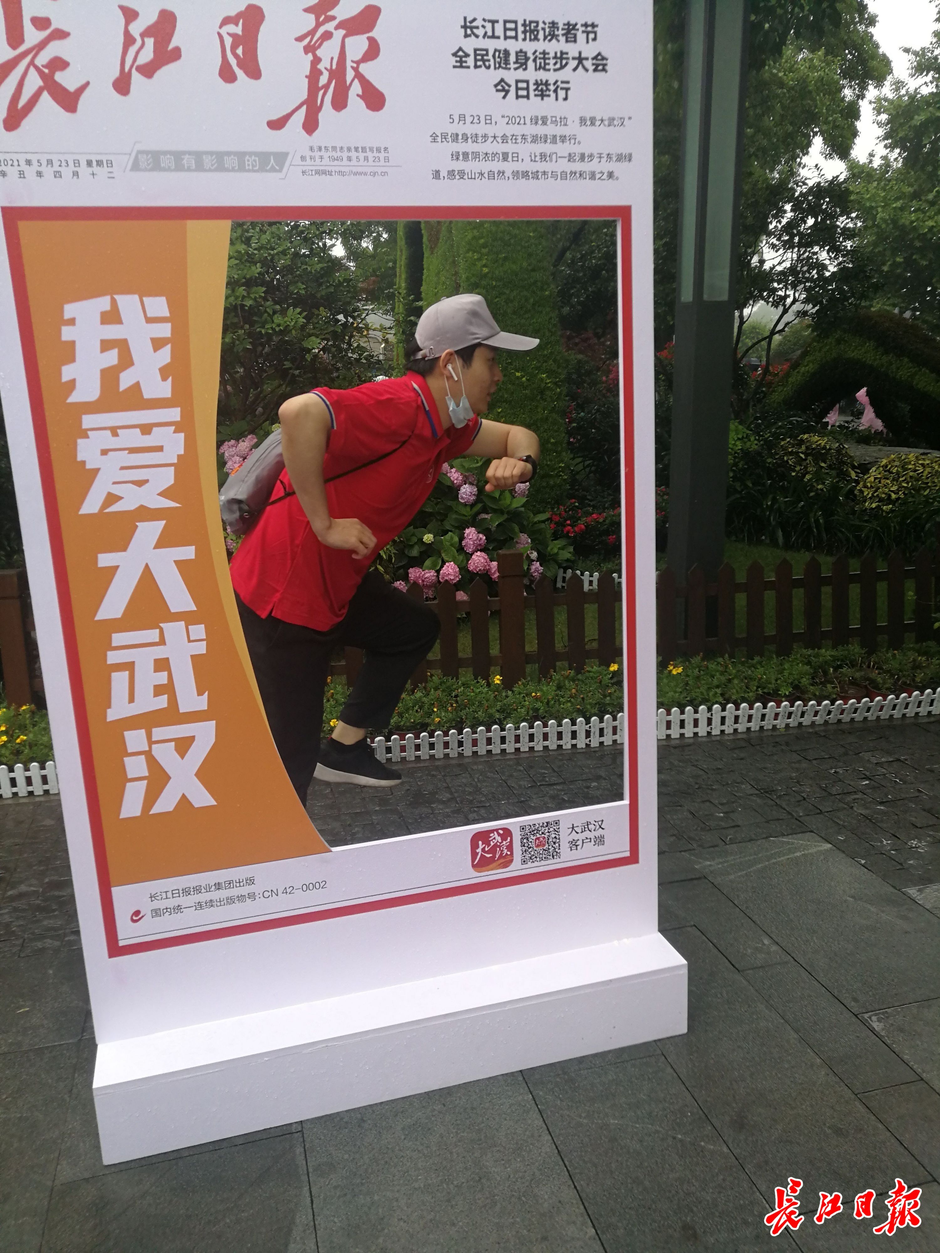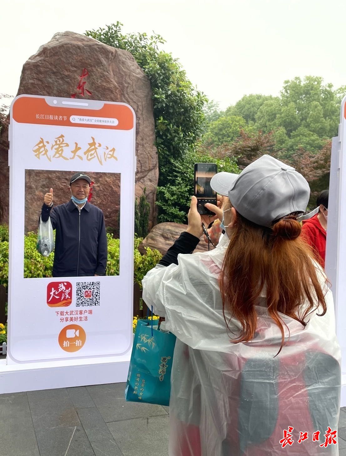 长江日报5月23日讯 5月23日,“绿爱马拉·我爱大武汉”长江日报读者节全民健身徒步大会在东湖绿道举行。现场,长江日报“我爱大武汉”主题背景板堪称“最火背景板”,虽然下着小雨,但大家热情不减,读者纷纷打卡合影,并竖起大拇指点赞。