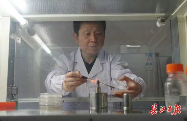 肖扬教授在香菇实验室。 记者何晓刚 摄