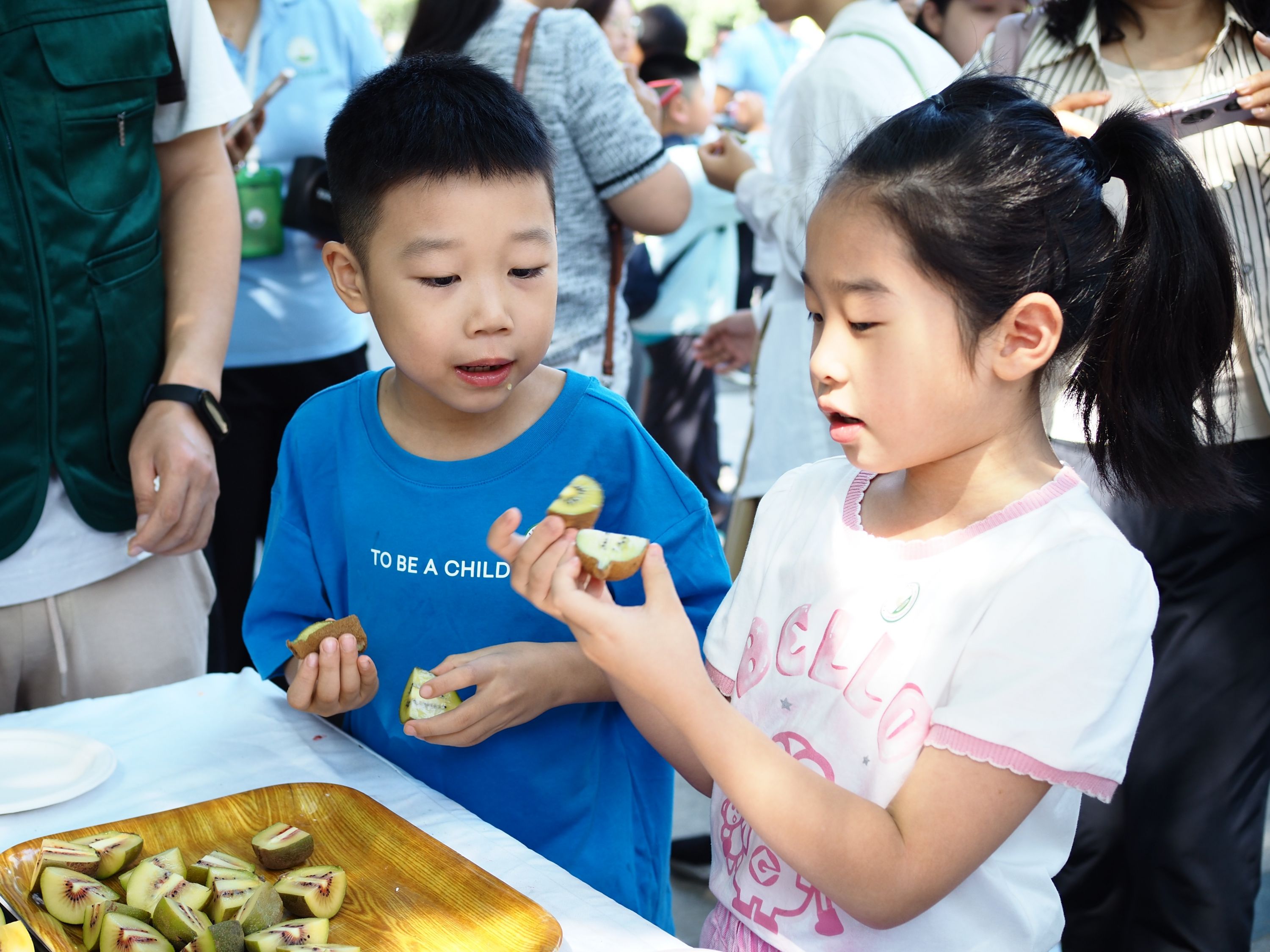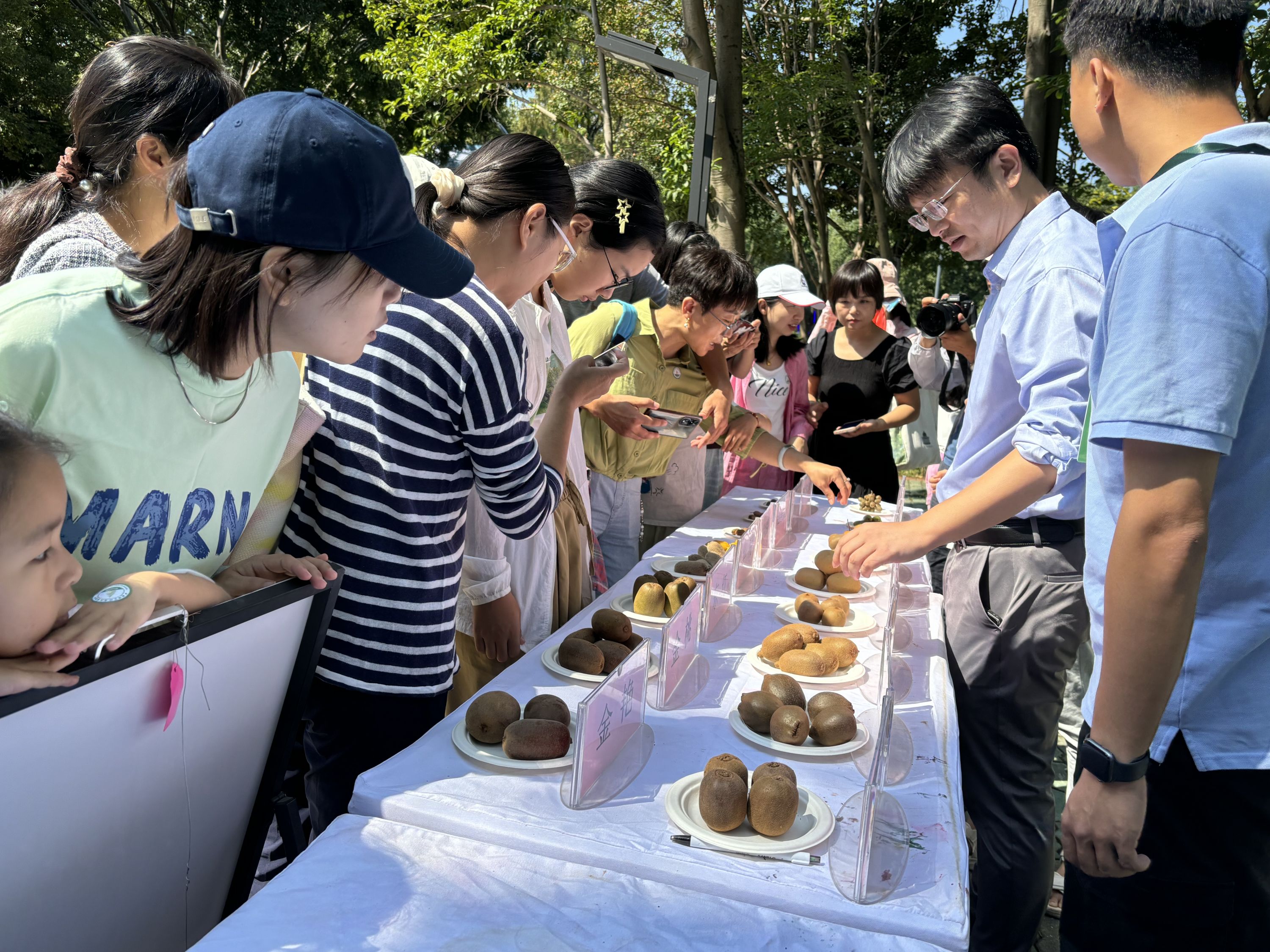 “这两种猕猴桃都很甜,您更喜欢哪一种?”在专家指导下,100多名市民现场品尝了这两种猕猴桃,并打出分数。