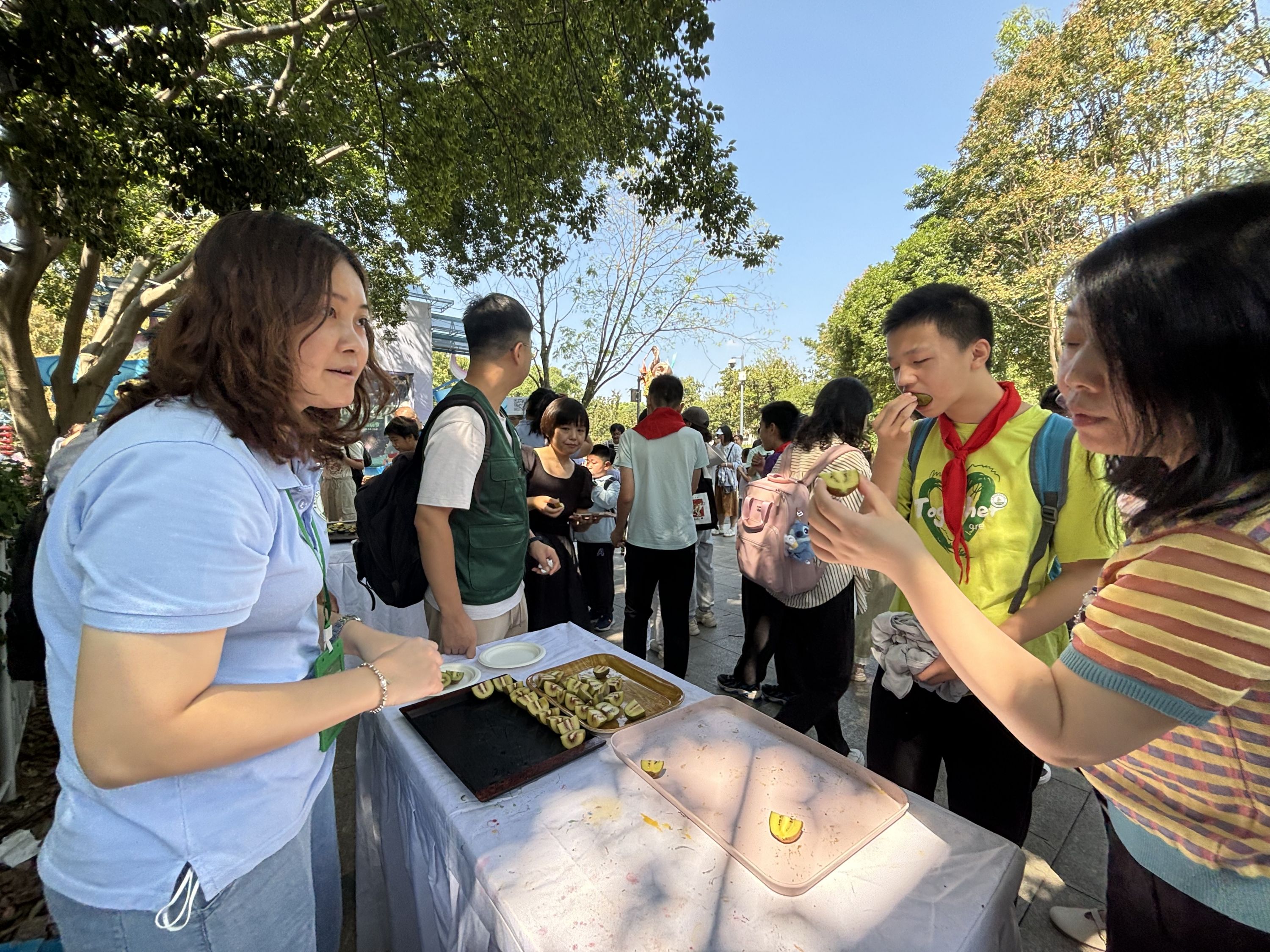 市民试吃猕猴桃新品种。