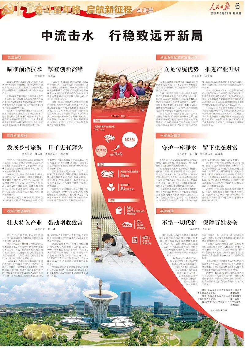 《人民日报》5月23日5版至8版推出特刊《奋斗百年路 启航新征程·湖北篇》