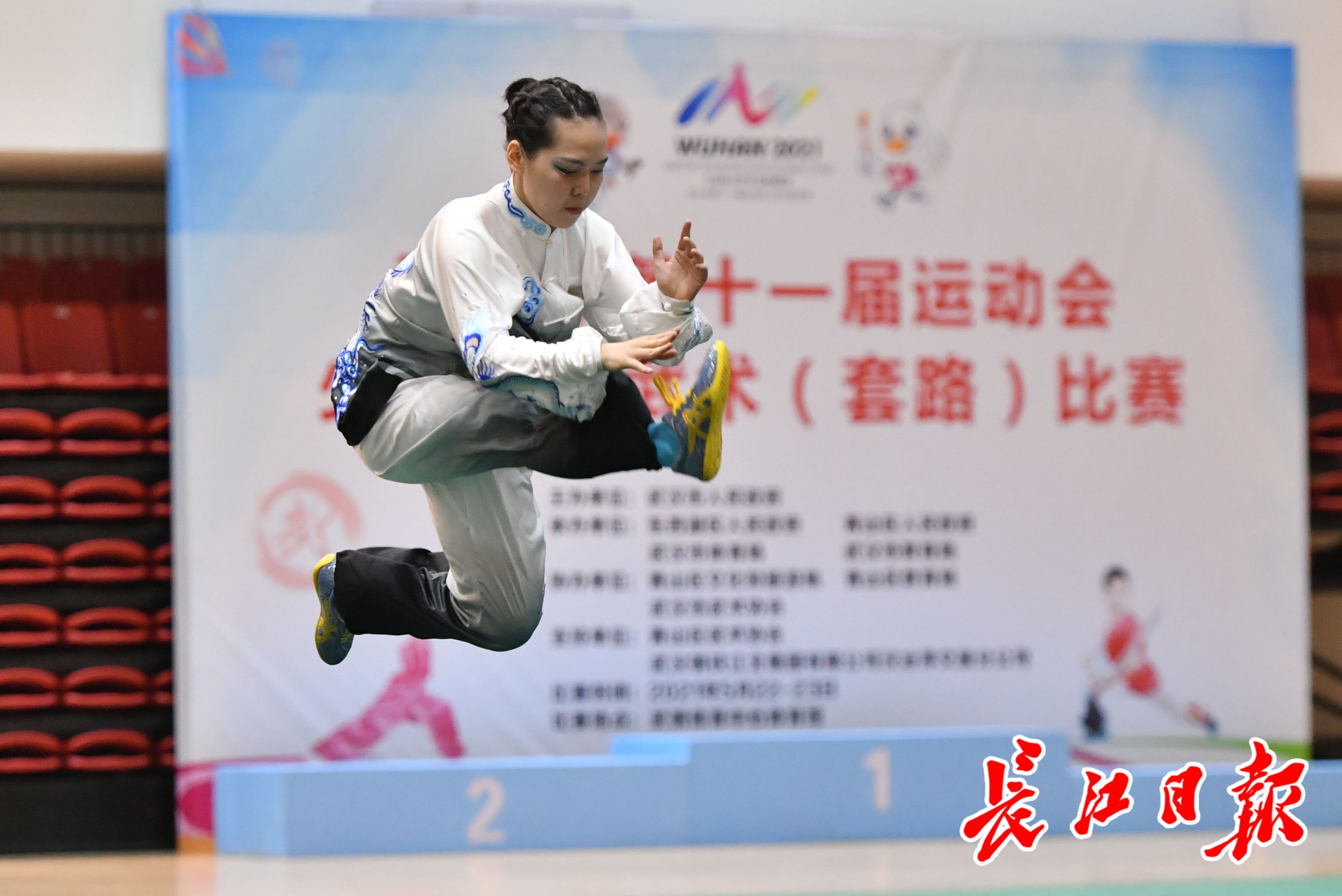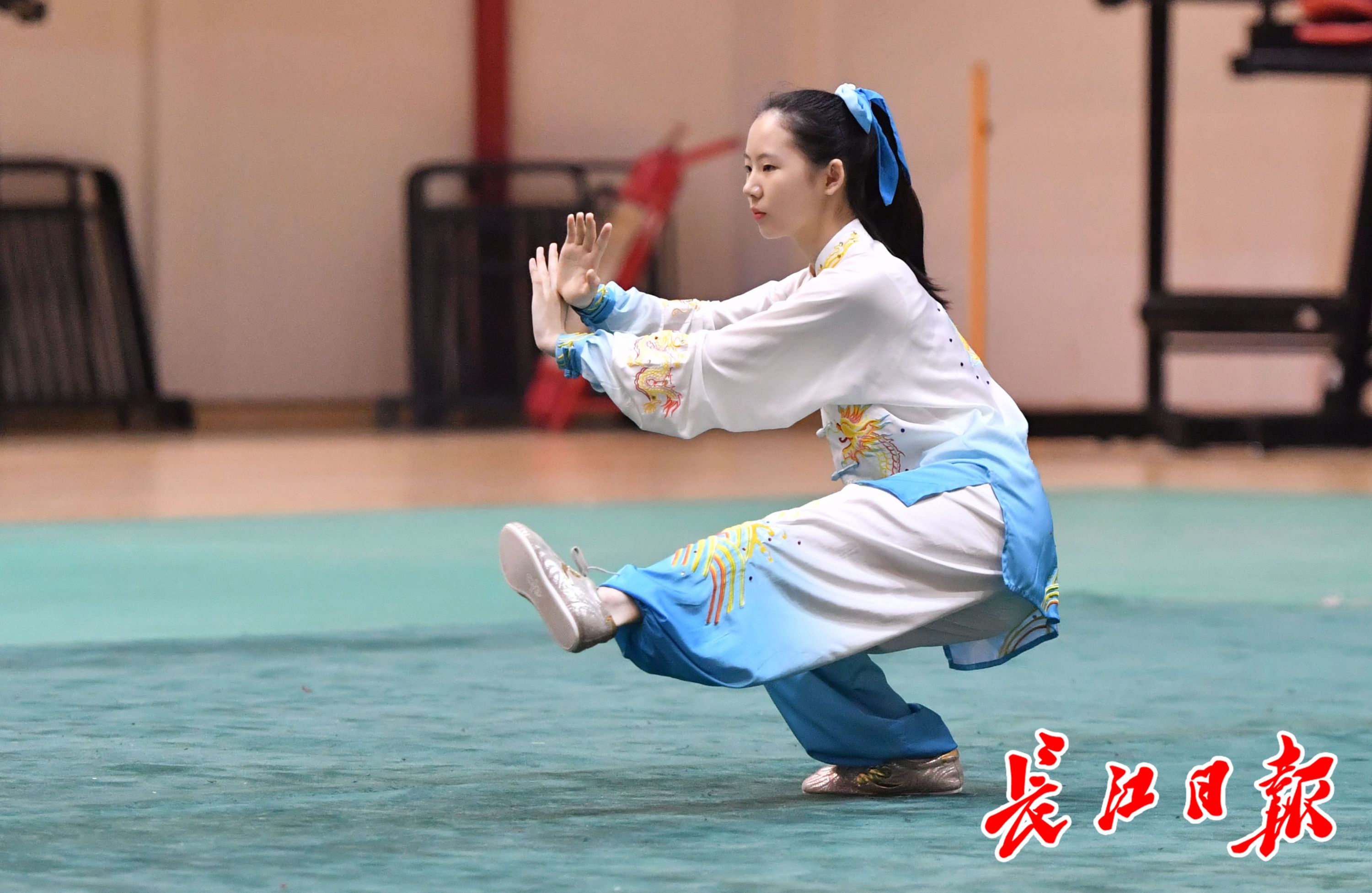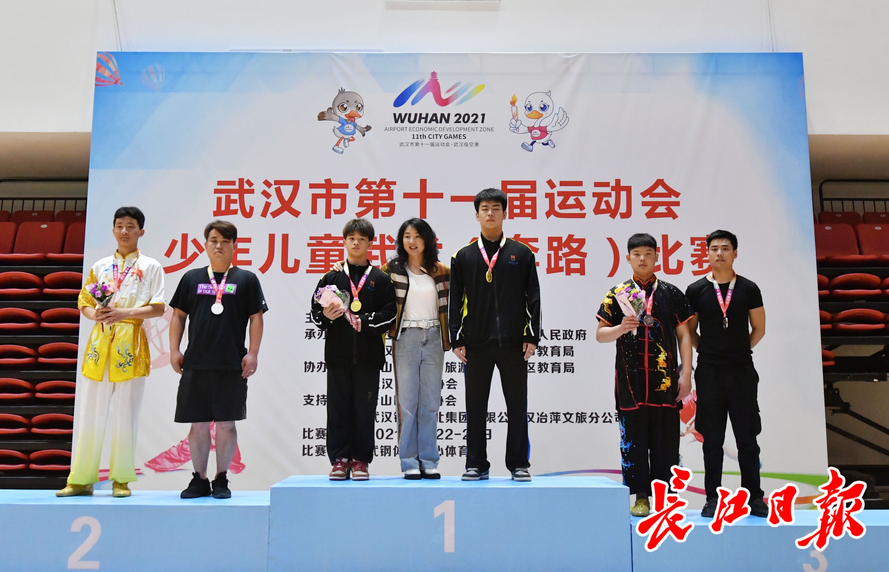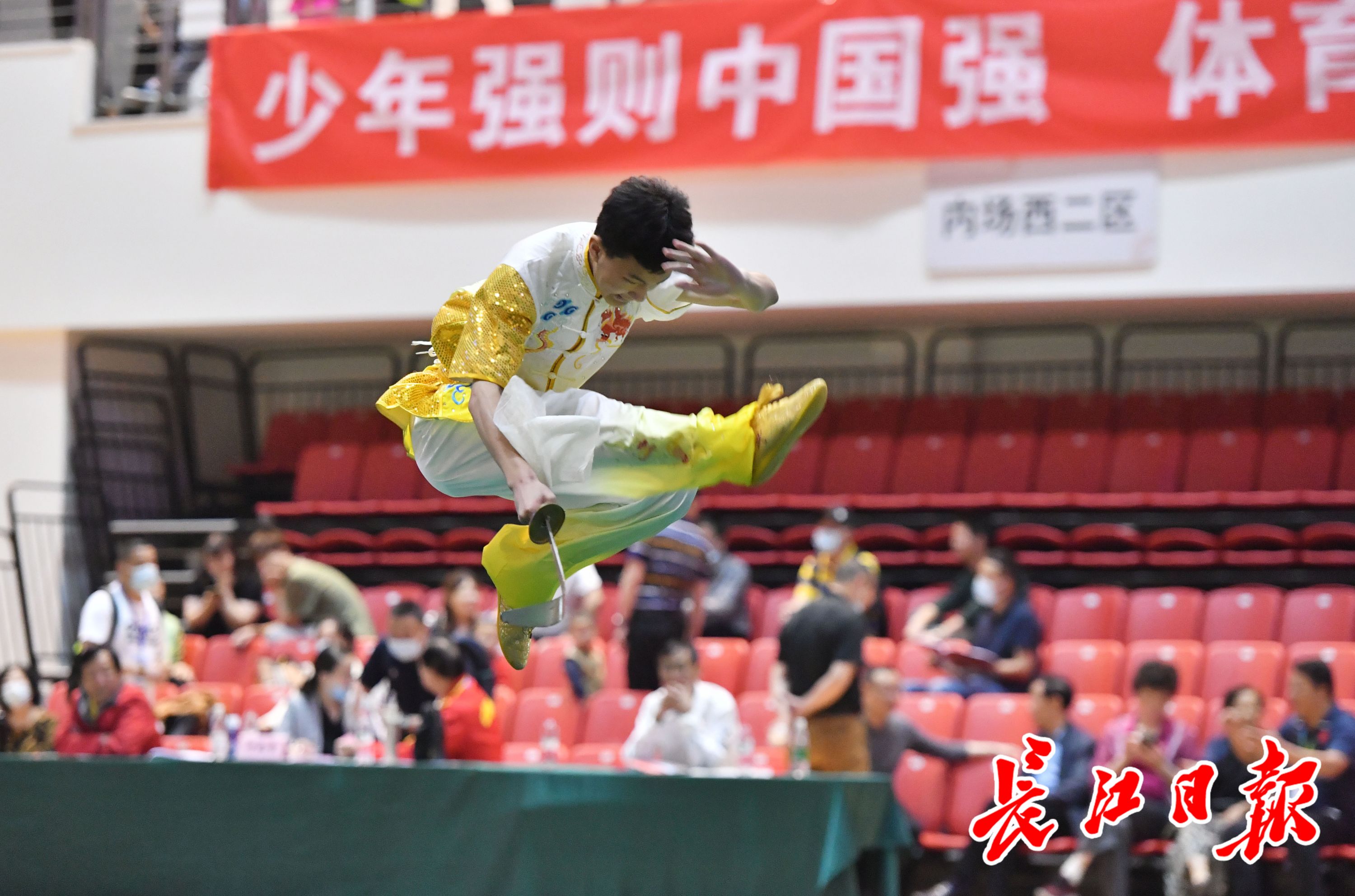 长江日报5月23日讯 5月22日至23日,武汉市第十一届运动会青少年体育类少年儿童组的首项赛事——少儿武术(套路)比赛,在武钢体育公园体育馆开幕。
