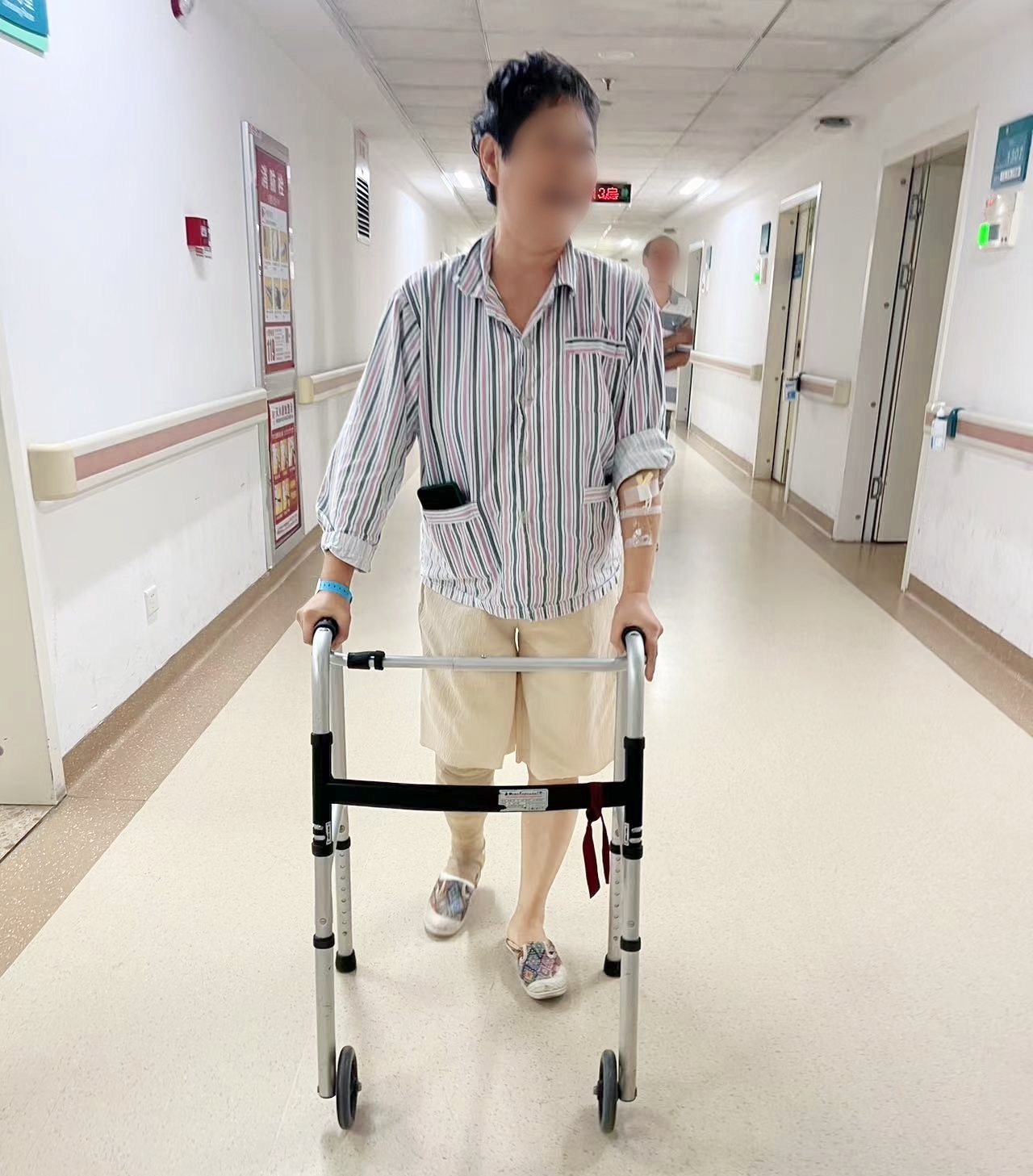 “万万没想到,恢复这么快!我又能下地行走了!”术后当天,靳奶奶在医生和护士的指导下行走并进行功能康复,其间,她步态平稳。“院长主刀,机器人辅助,我很放心。”靳奶奶及家人表示。