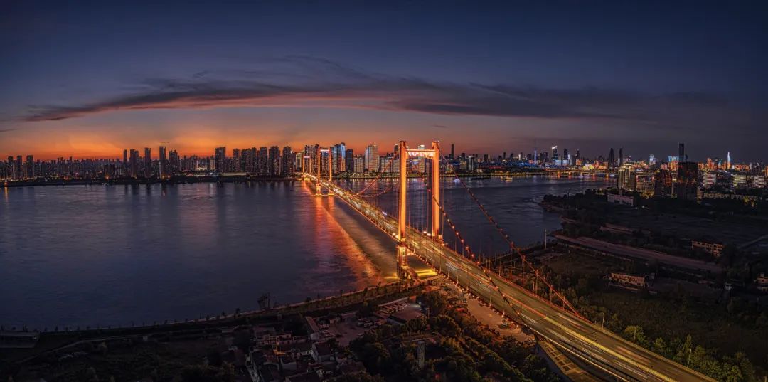 《武汉鹦鹉洲长江大桥夜景晚霞》 方青 中国武汉