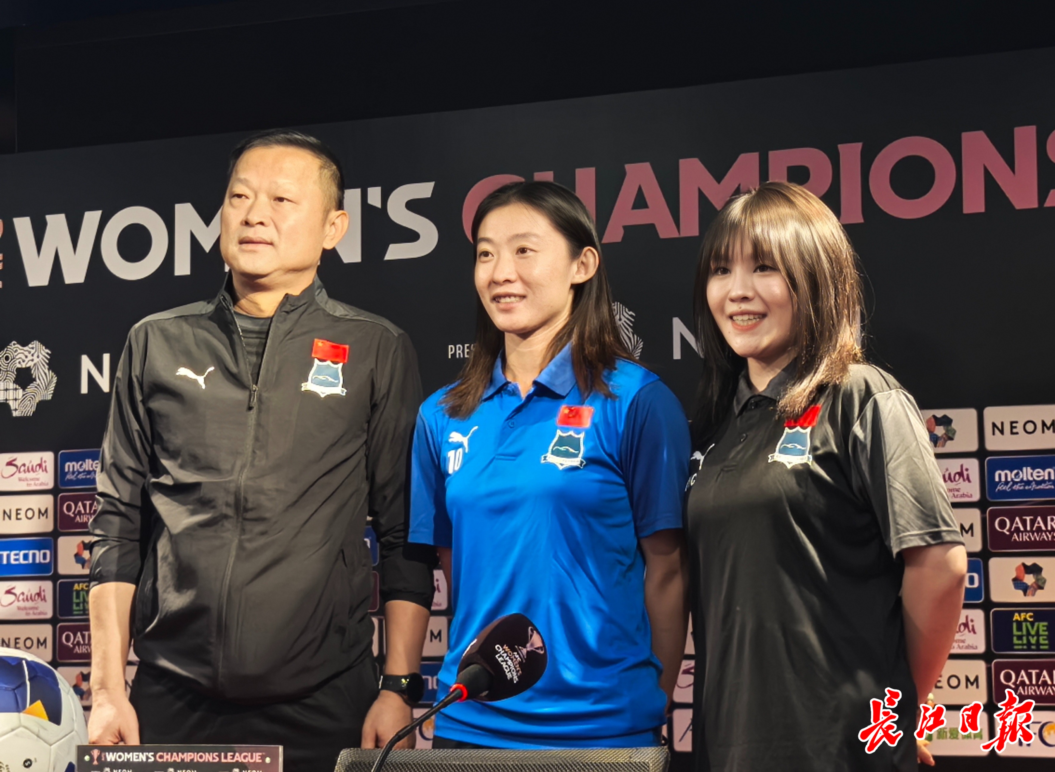 在今天上午的新闻发布会上,“东道主”武汉车谷江大女足俱乐部被安排在最后出场,主教练常卫魏携队长姚伟一同出席。