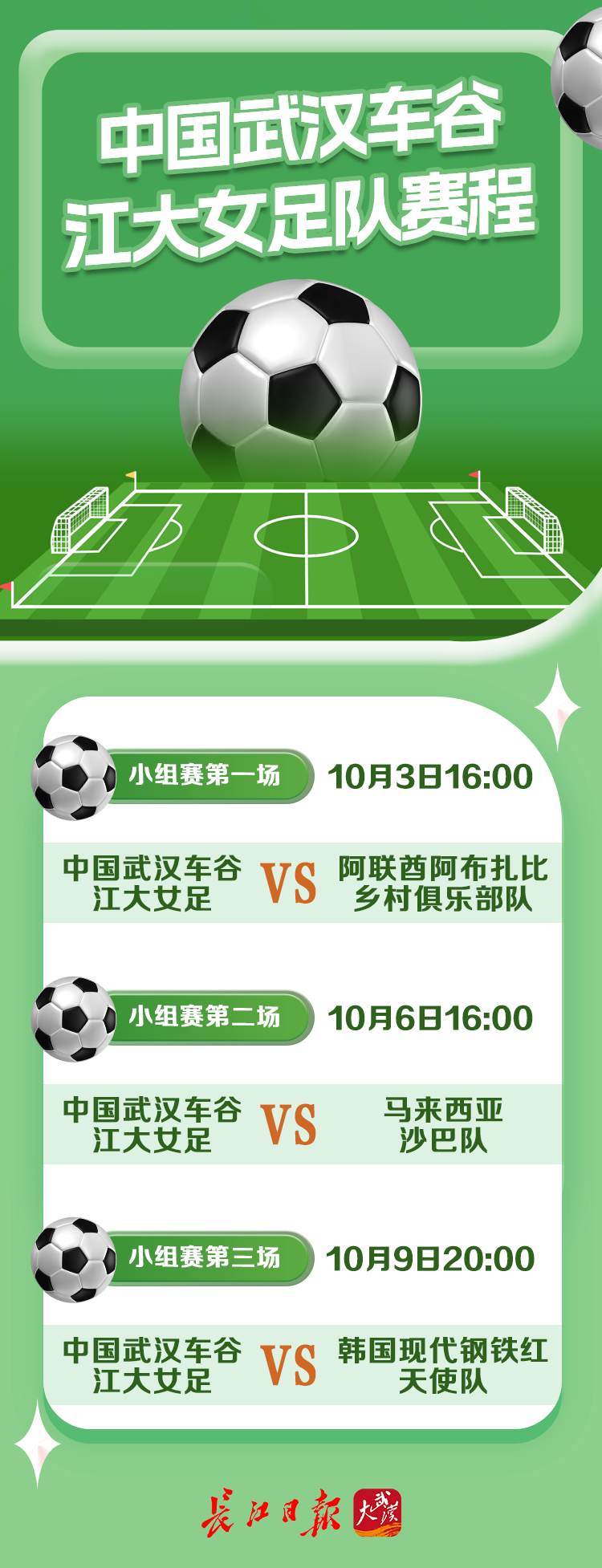 根据赛程,首届女足亚冠中国赛区的首轮小组赛将在10月3日16时打响,首轮较量将由中国武汉车谷江大女足迎战阿联酋阿布扎比乡村俱乐部女足,而韩国现代钢铁红天使女足则将与马来西亚沙巴女足过招。