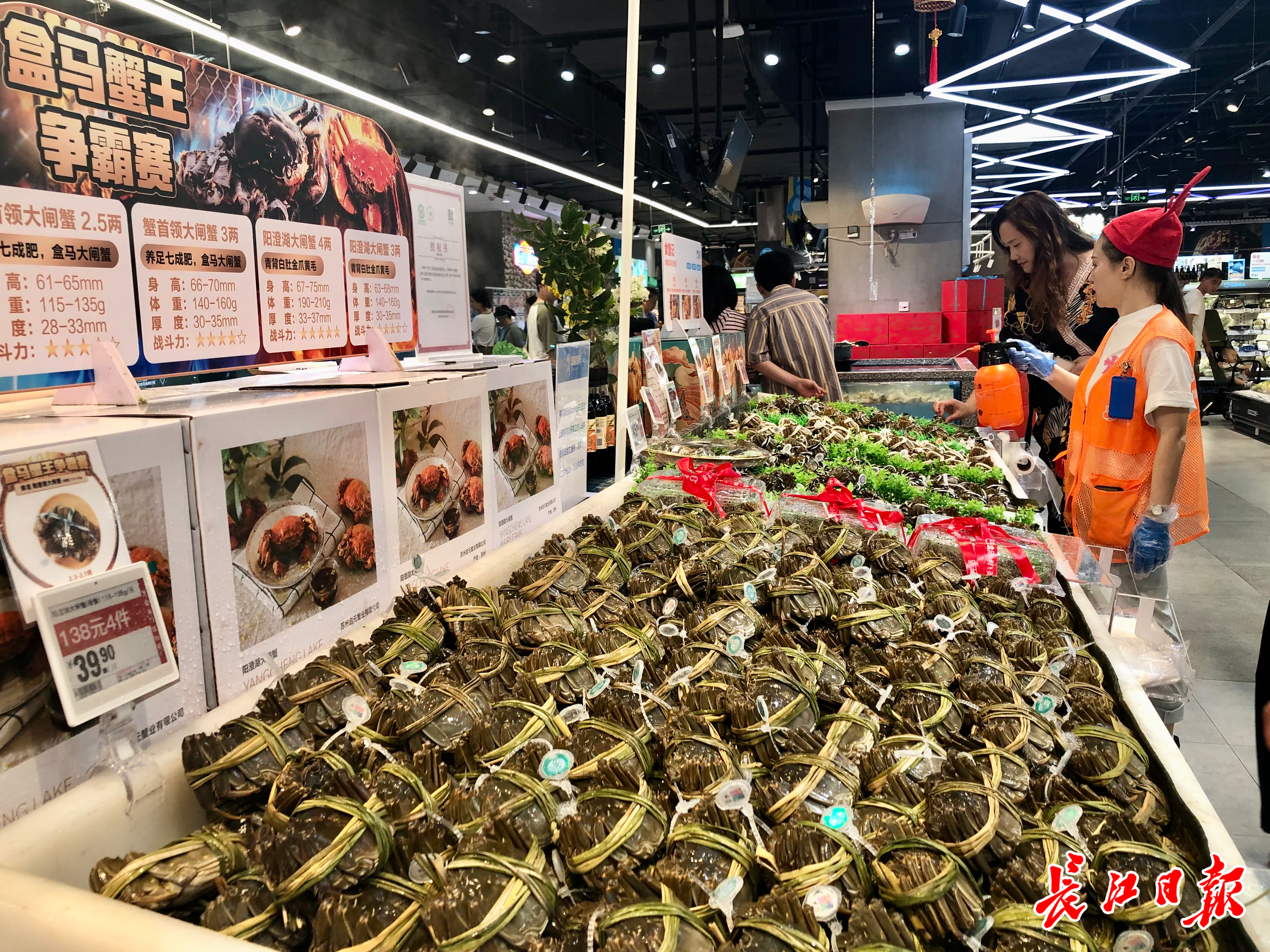武汉超市门店可以提供大闸蟹的现场加工服务。张珺 摄