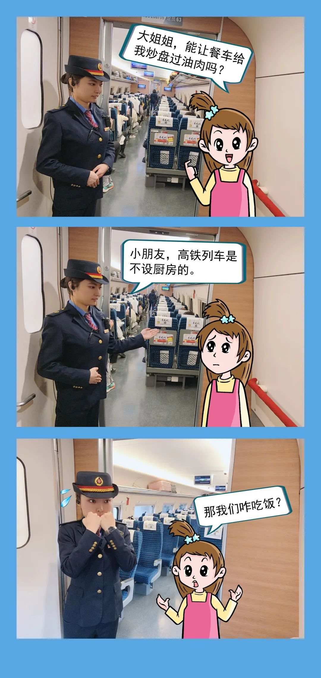 高铁列车是密闭空间,炒菜油烟大,不易排出,列车内是不设厨房的。餐车内有各种美味可口的冷链盒饭供大家选择。