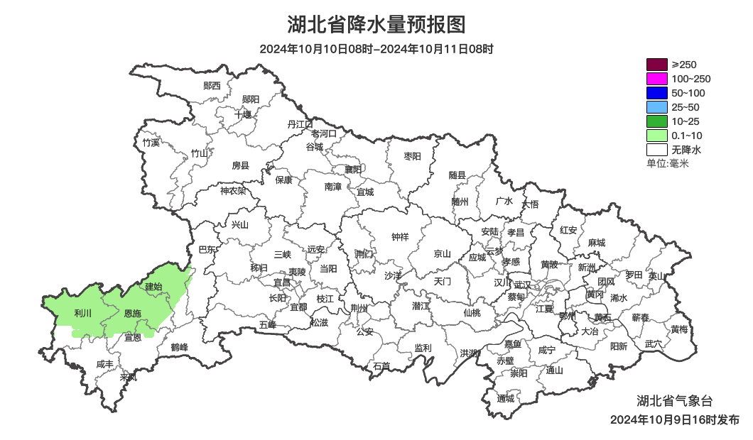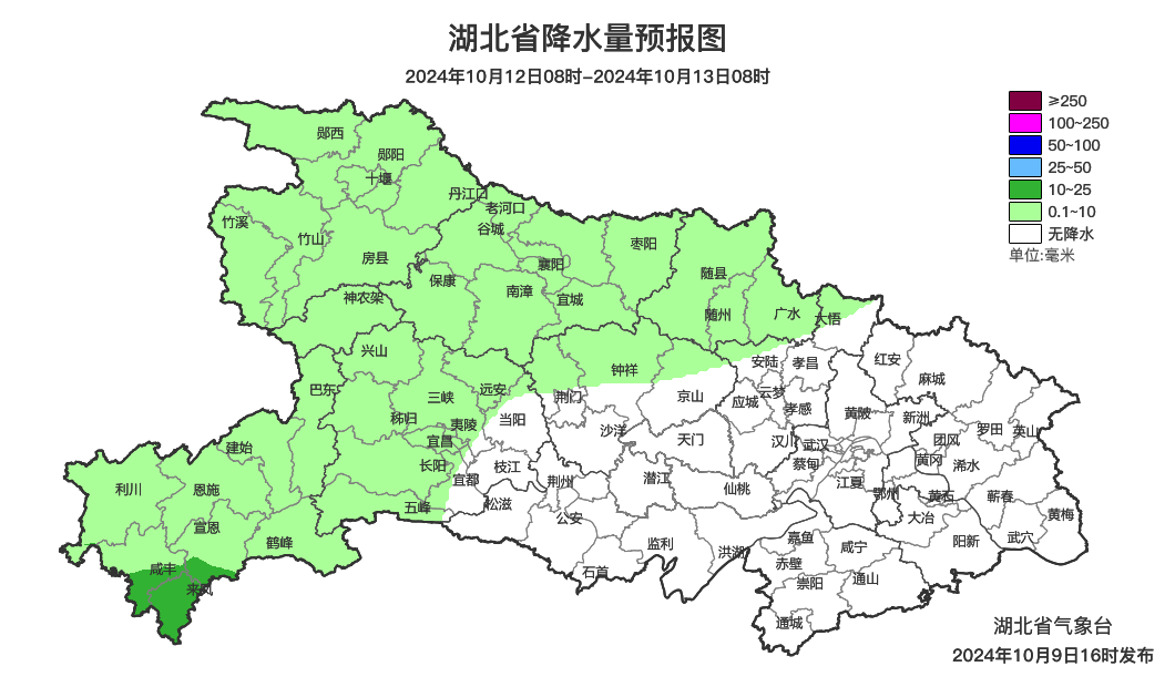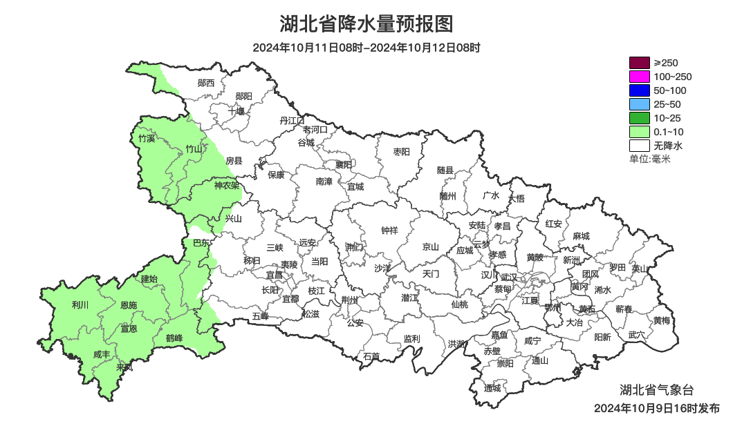 预报来源:湖北省气象台2024年10月9日16时预报