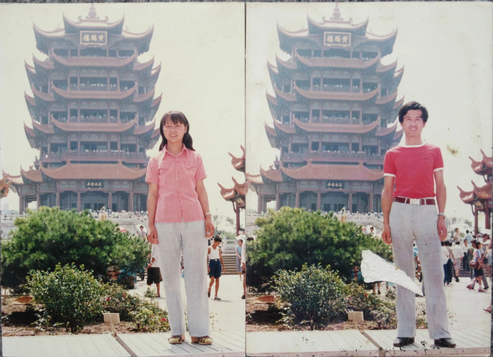 1987年元旦,朱德祥和小花结婚,后来女儿出生,直到2015年12月,夫妻俩才第二次走进黄鹤楼,在同一个地方合影留念。