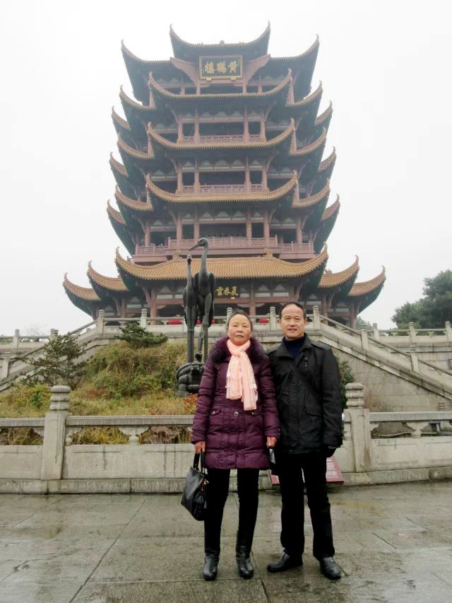朱德祥寄来了他和爱人在黄鹤楼下拍的照片,“黄鹤楼见证了我们的爱情。”