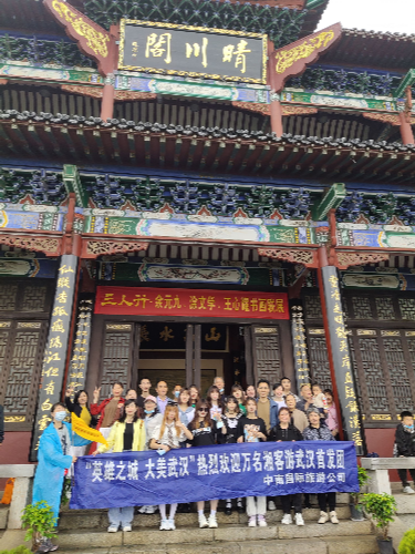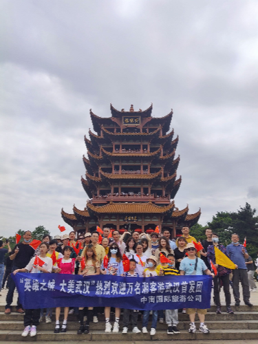 5月21日,万名湘客游武汉首发团抵汉,游玩了黄鹤楼、晴川阁等景区。中南国旅供图