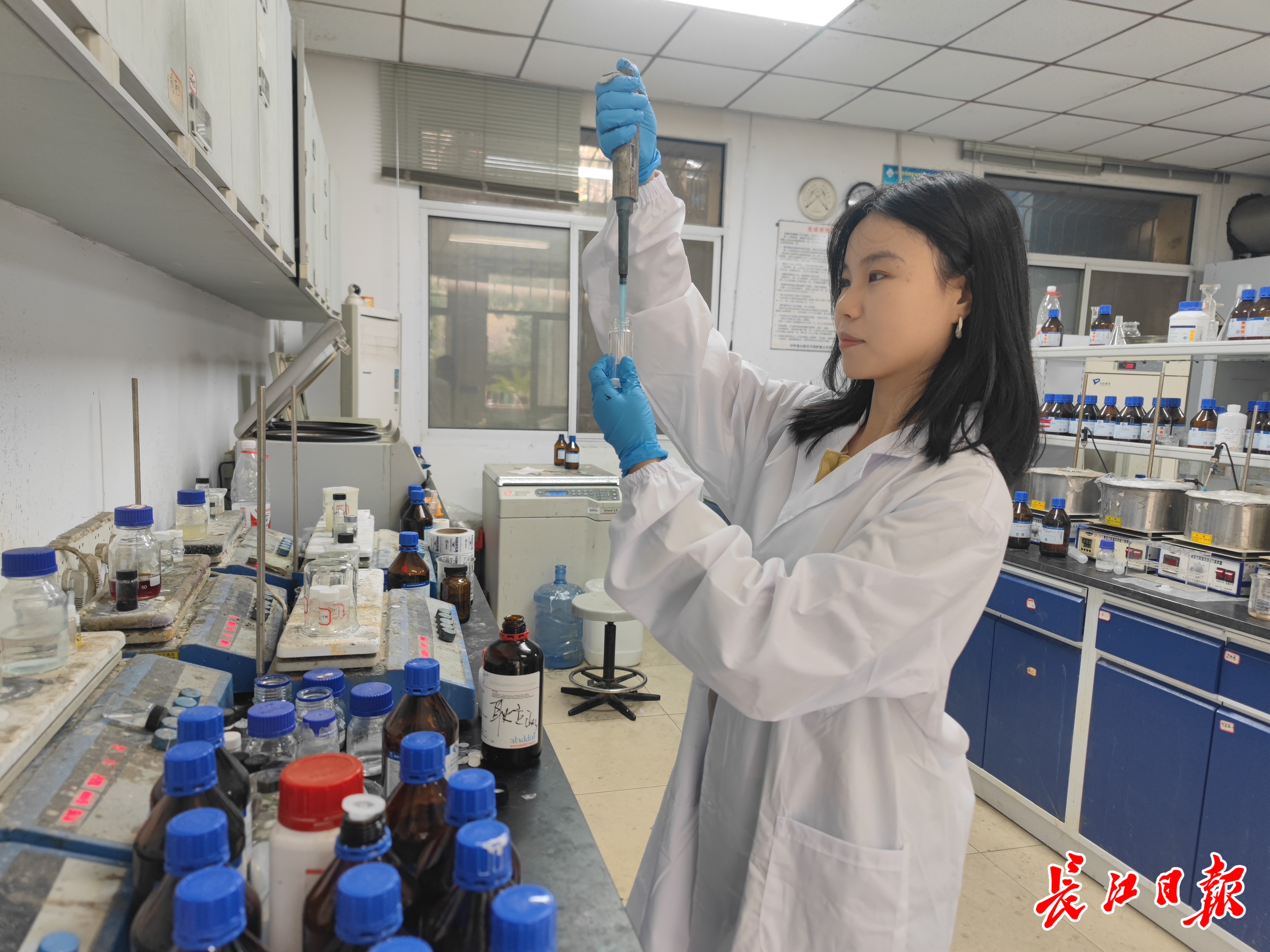 麦立强教授团队博士生耿立珊正在做实验。记者汪洋 摄
