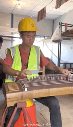 农民工小伙工地弹古筝走红