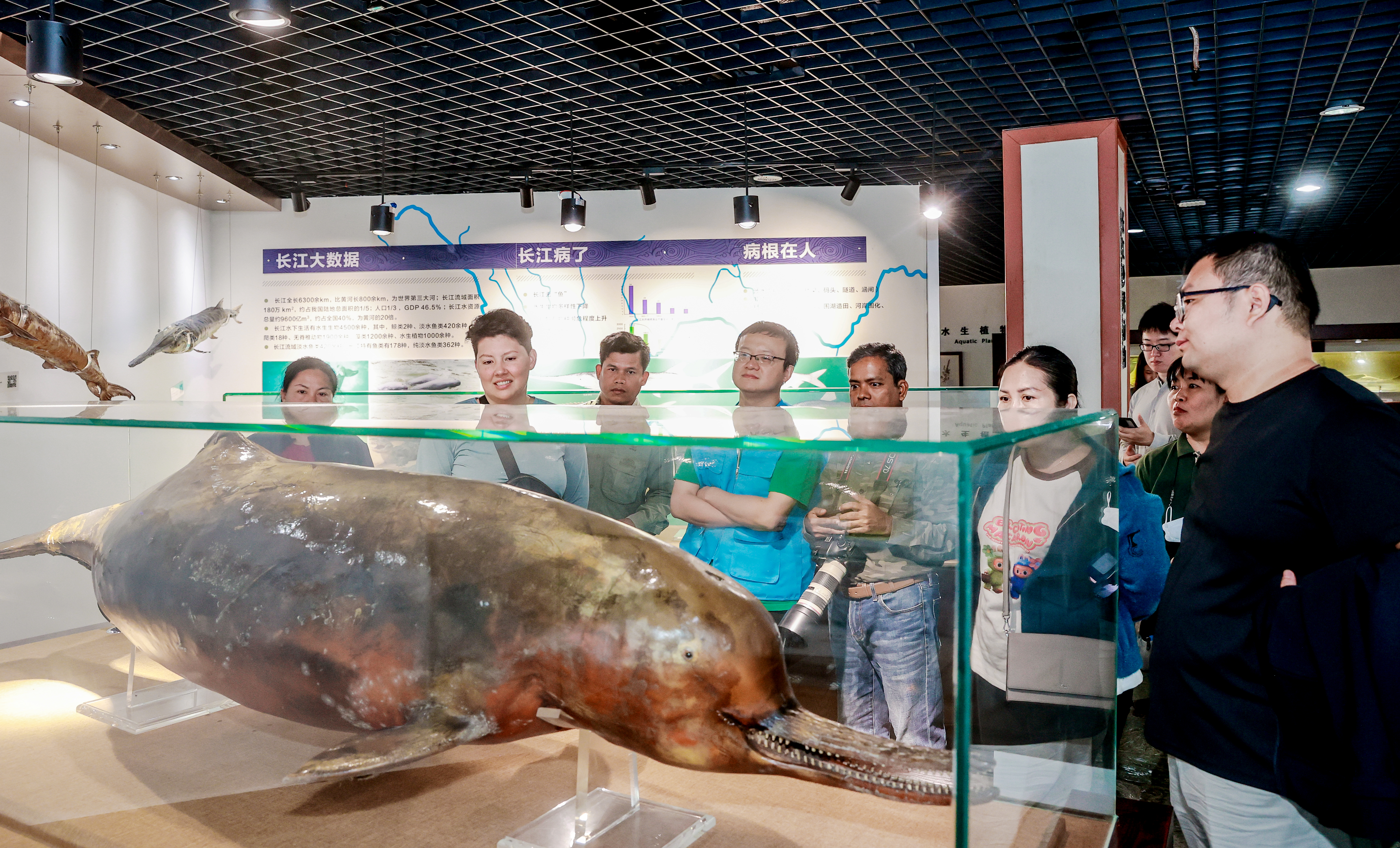 专家们参观中国科学院水生生物研究所水生生物博物馆与白鱀豚馆。陈亮 摄