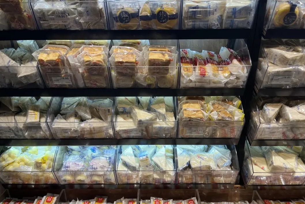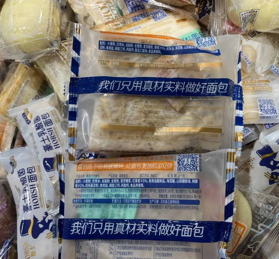 在广州番禺一家零食集合店,记者看到,门店货架上约有91款面包类制品,其中含有脱氢乙酸钠的商品有57款,占比约62.64%,含有脱氢乙酸钠的品牌包括港荣食品、零食研究所a1、烘宁、乐麦隆、百食佳兰德、阿奈、好食街、回头客、泓一、海之最、爱乡亲、金胜优品等。