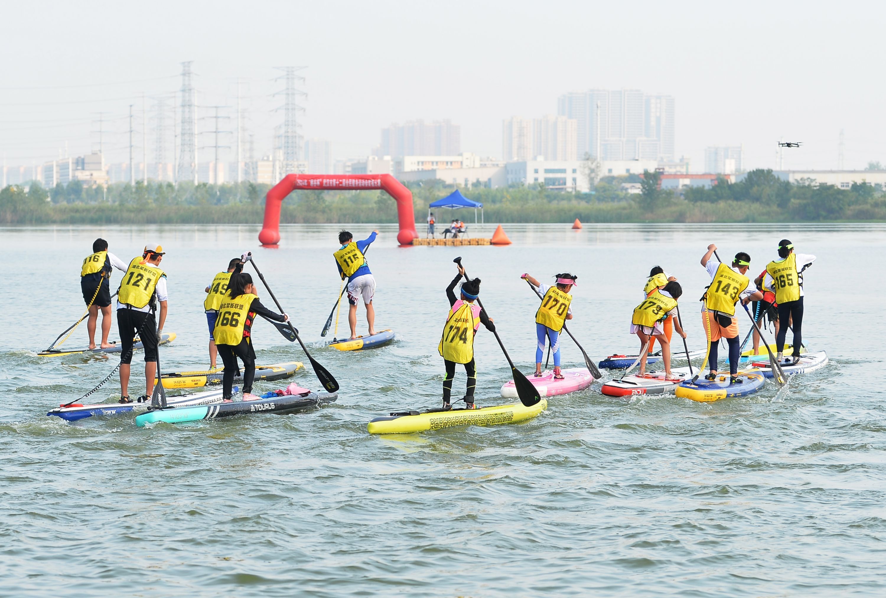 在中润趣谷景区举行的桨板比赛。 喻志勇 摄