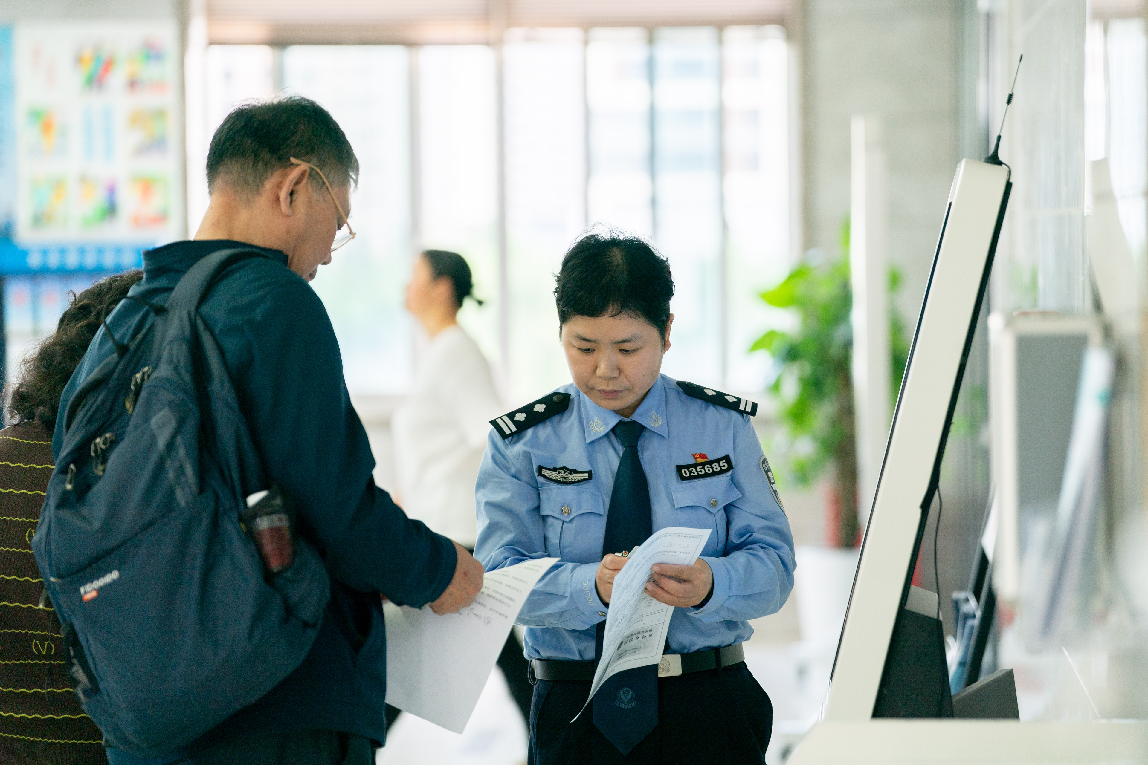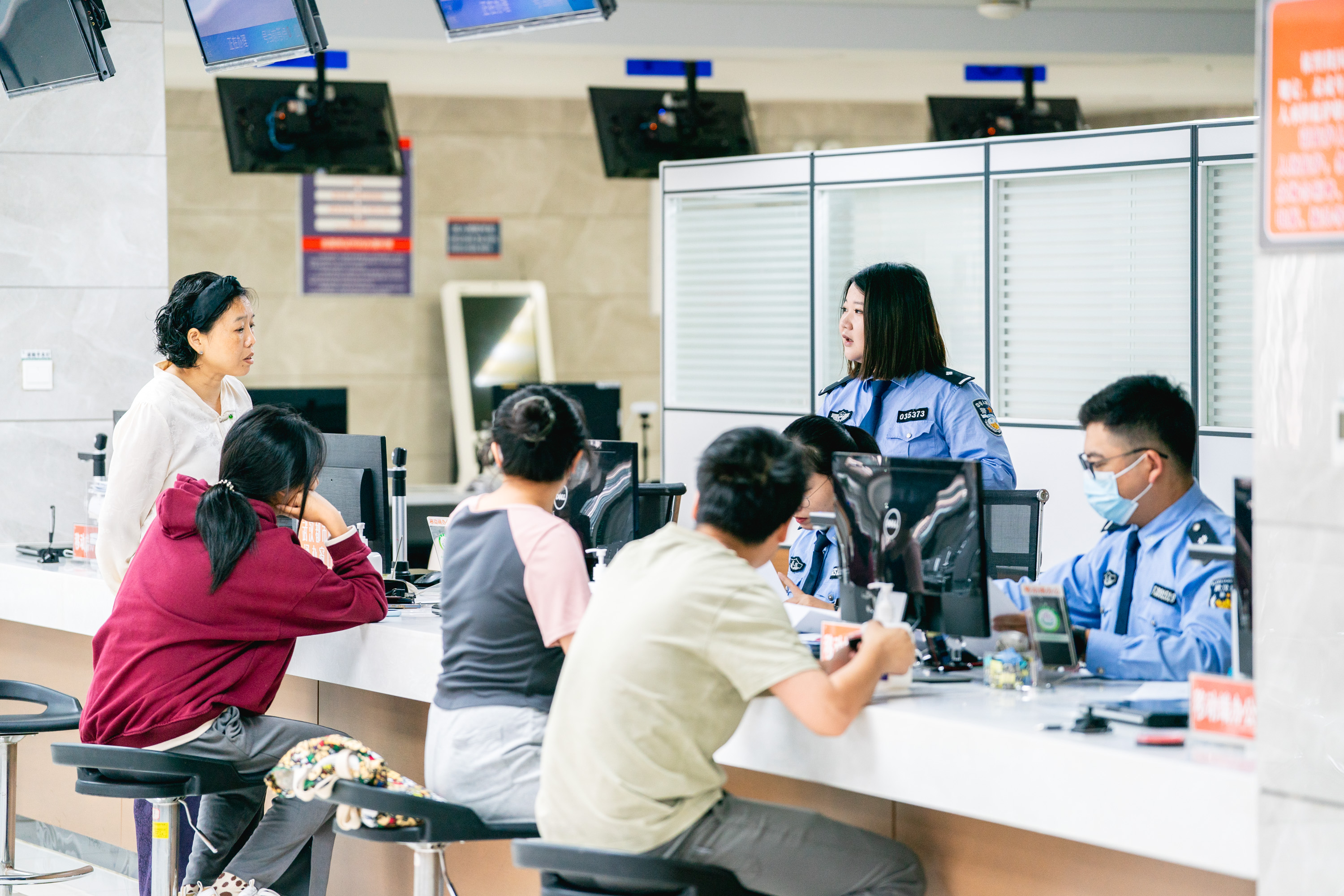 今年以来,政务中心公安窗口实行户籍服务窗口与出入境民警“AB”岗替补和相邻互补制度,要求民警、辅警同时熟悉出入境、户政两项业务,实现一岗多责。当其他岗位出现接待应接不暇、工作任务繁重或因故离岗等紧急情况时,就有人迅速补位。