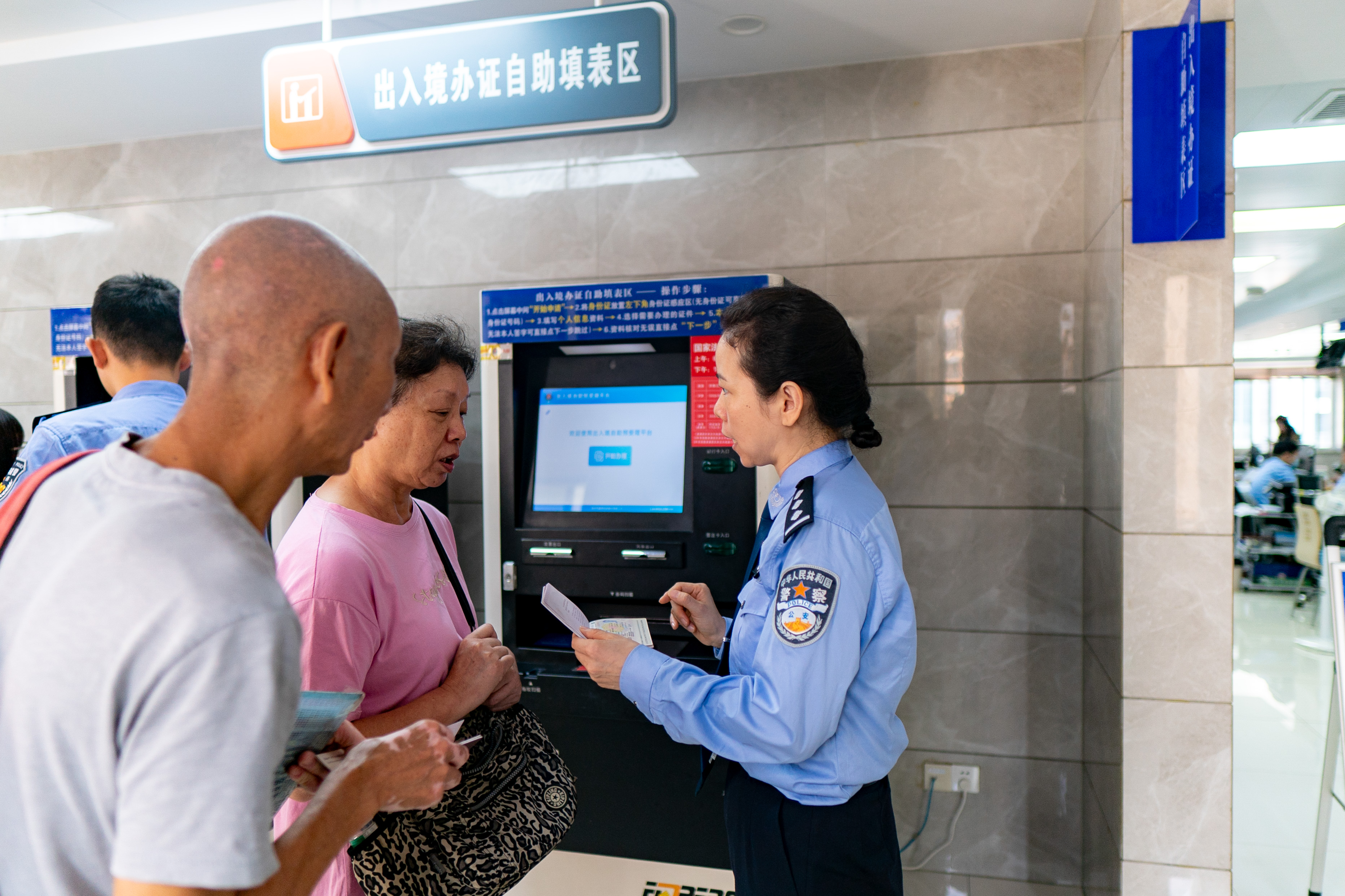 “上次来办理业务时,也有工作人员耐心地指导我进行操作。手机预约时输入的信息,在自助机上直接就显示了出来,不用排长队,也不用填表,我准备好的老花镜都没用上。”66岁的桂爹爹谈及自己第一次办理护照的经历时,满是开心,“到这里办事,我感到很方便,很暖心”。