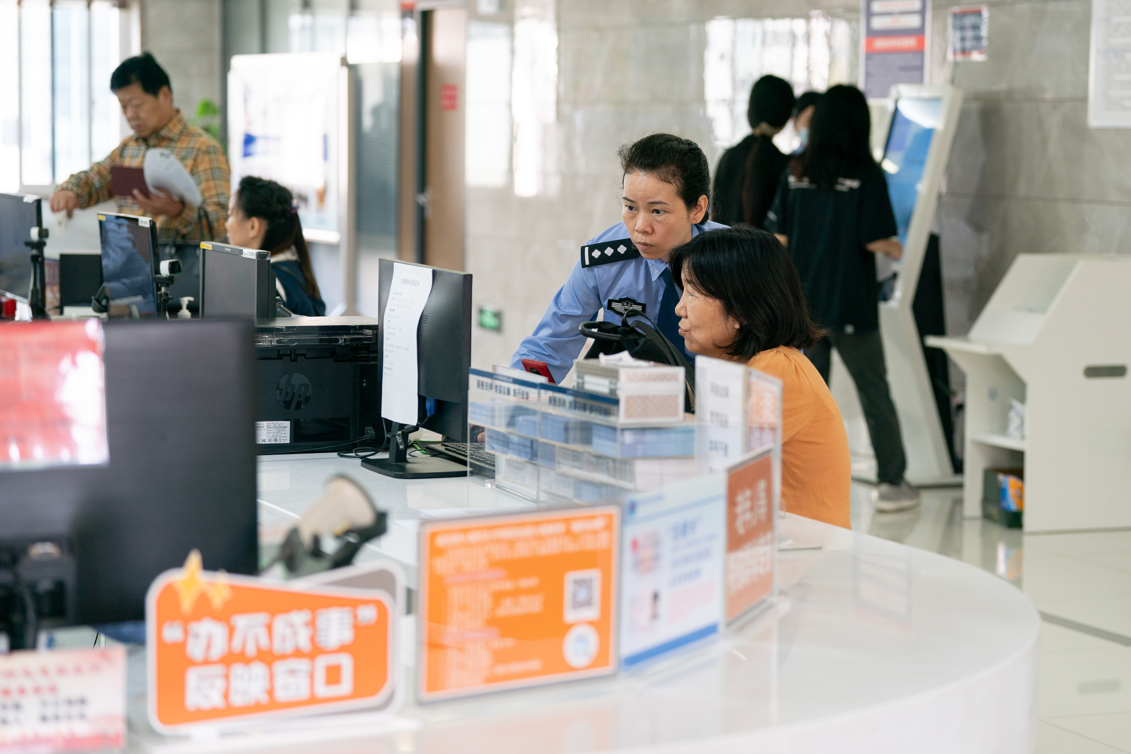 “这里是公安窗口的第一站,我们负责及时解答群众提出的各种问题,并为办理不同业务的群众提供引导服务。”黎燕芳介绍道。近年来,政务中心引入了众多智能设备,大幅缩短了业务办理时间。然而,对于初次使用这些设备的市民来说,往往会感到有些迷茫。此时,若有人在一旁指导其操作,办事效率则会显著提升。窗口民警辅警就“一对一”为群众提供引导服务。