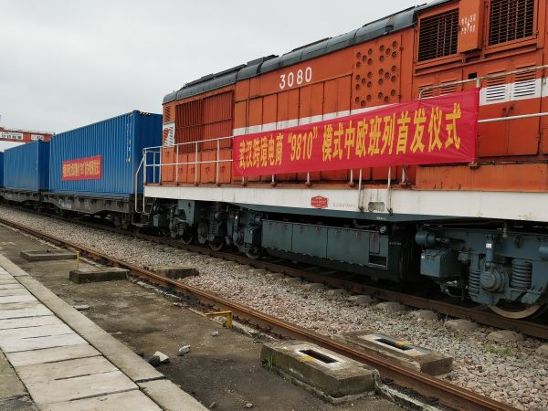 27日,X8015次列车从吴家山站开出,开往德国杜伊斯堡。 通讯员李伟 摄