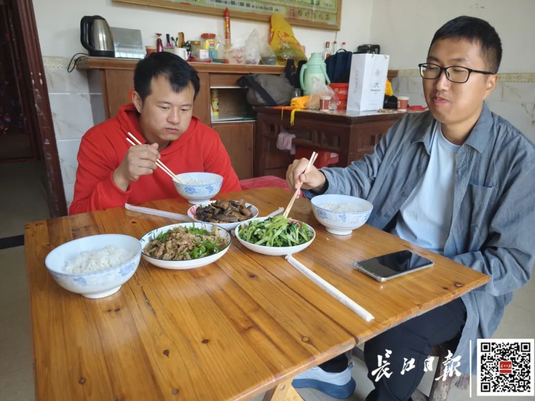 长江日报记者在现场看到,为了招待王笑,冯鹏特意请房东做了可口饭菜,并留王笑在租住屋里吃了午饭。