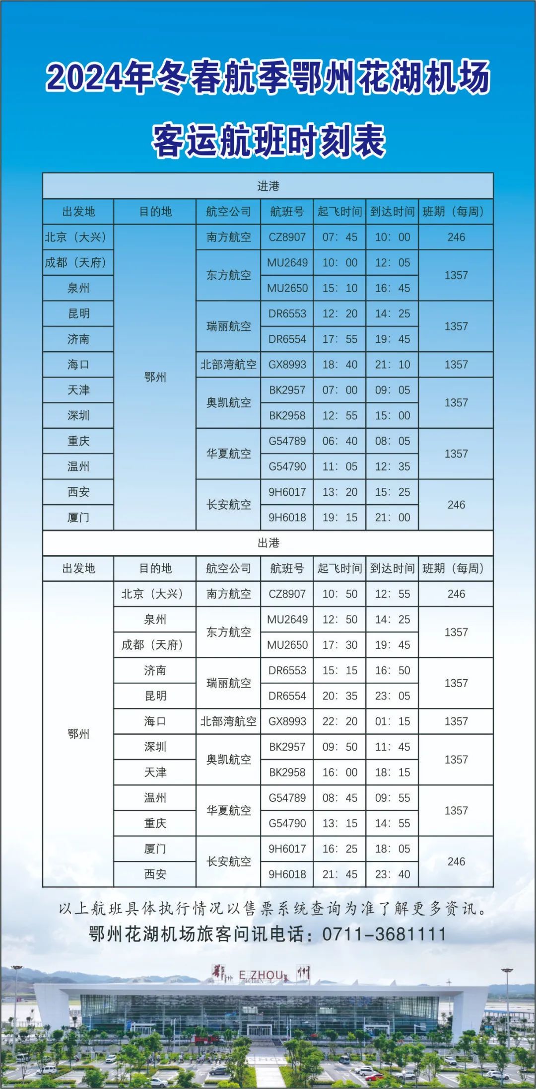 2024年冬春航季航班计划,