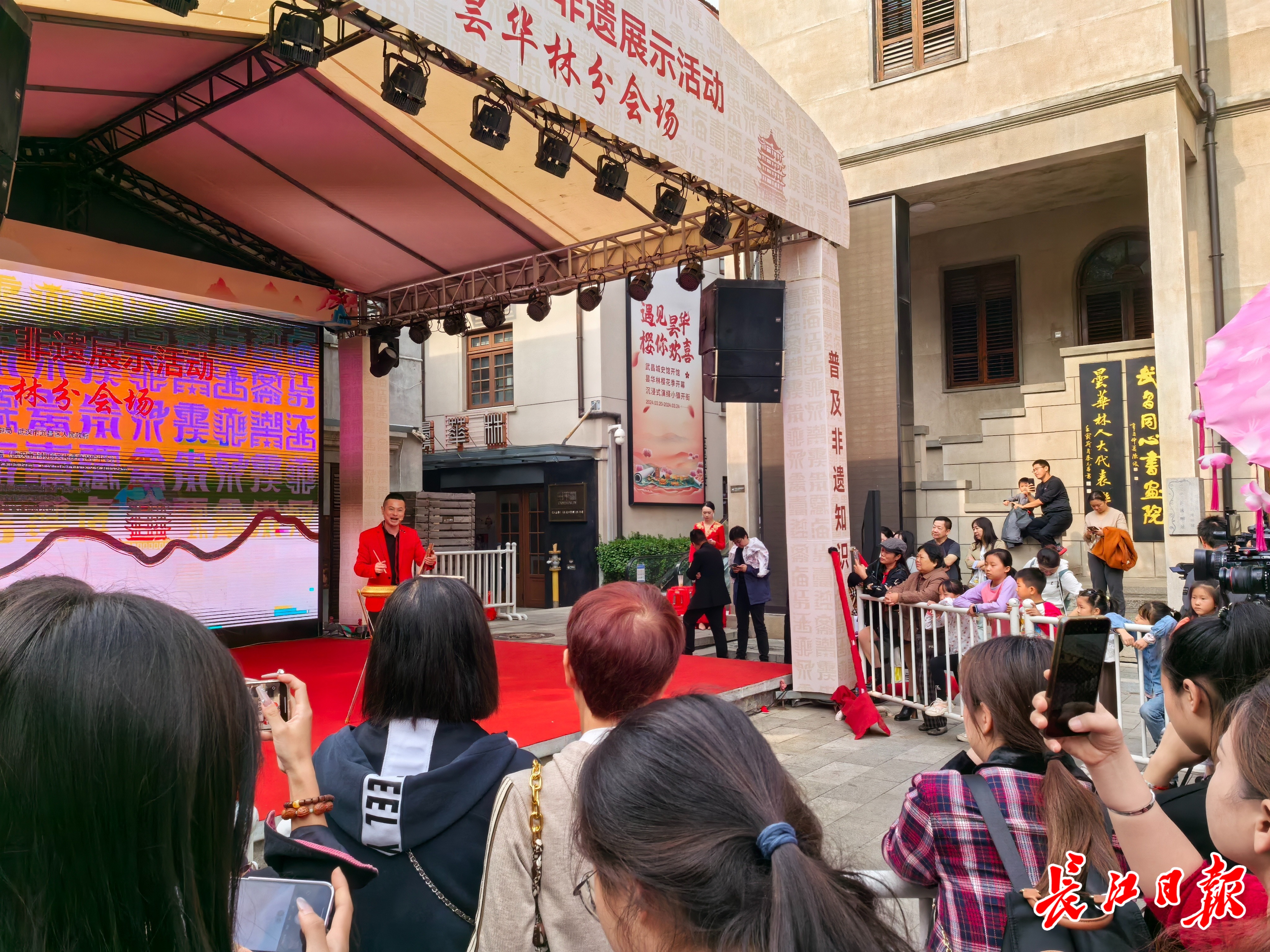 非遗专场演出湖北大鼓上演,吸引大量游客围观。长江日报记者 晋晓慧 摄